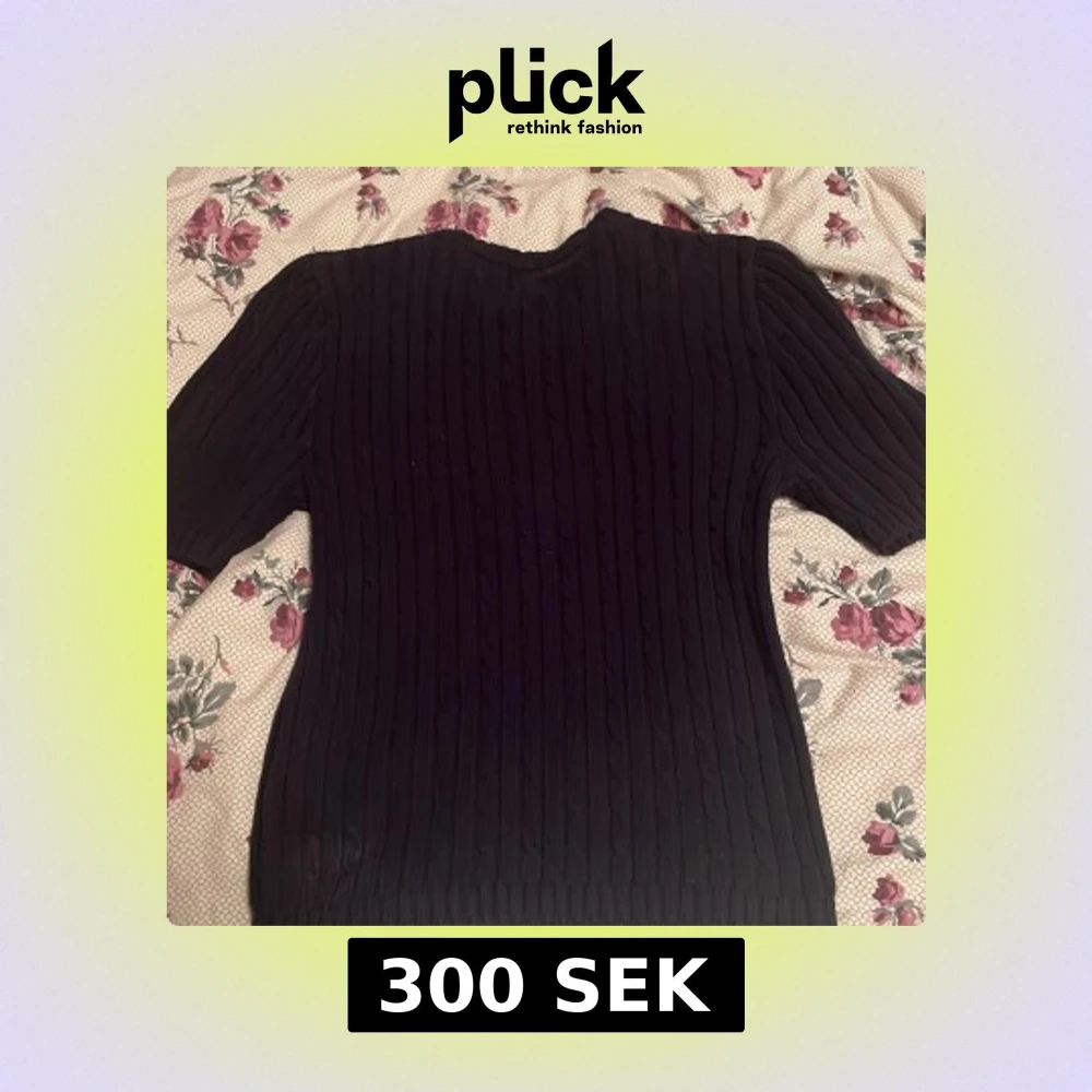 Svart stickad tröja med ribbat mönster och kortare ärmar. Tröjan har en klassisk rund halsringning och är perfekt för dig som gillar en enkel men stilren look. Passar bra till både jeans och kjol.