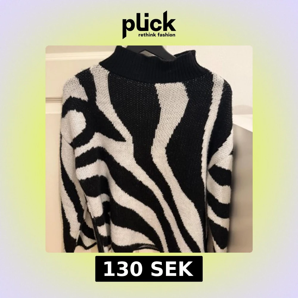 Snygg zebramönstrad stickad tröja från Estee Brown i svart och vit. Tröjan har en hög krage och långa ärmar, perfekt för att hålla sig varm och trendig. Ett måste för garderoben!