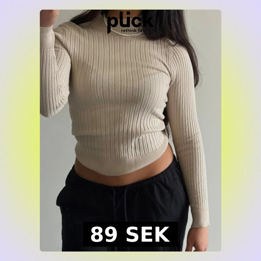 Säljer en beige ribbad stickad tröja med lång ärm och rund hals. Tröjan har en tight passform och är tillverkad i ett mjukt, stretchigt material som sitter snyggt på kroppen. Perfekt att styla med både jeans och kjol.