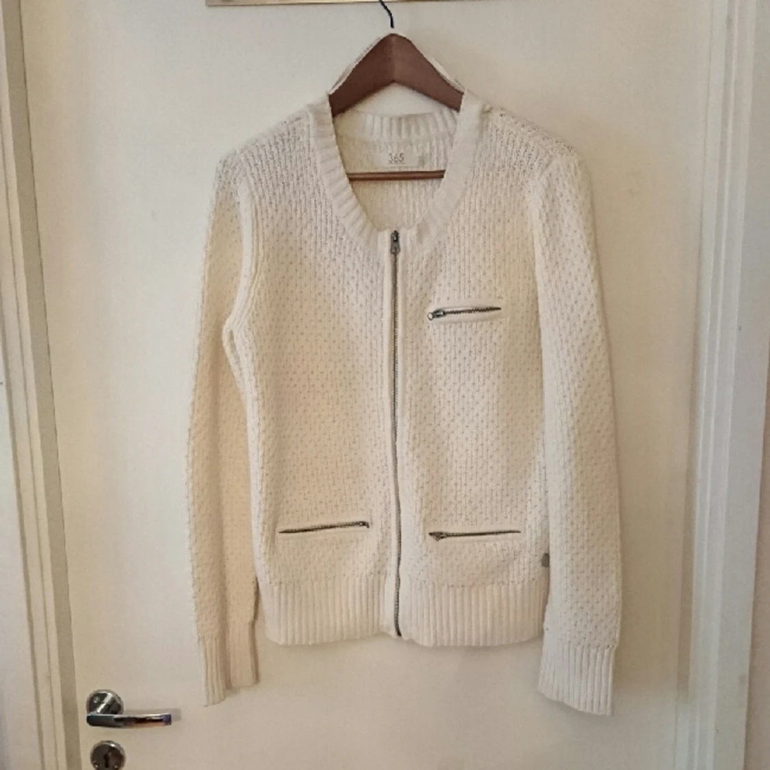 Vit kofta med dragkedja och små fickor på framsidan. Storlek L från 365, köpt på MQ för ca ett år sen för 700 kr Normal passform och jätte mysig men har tyvärr aldrig kommit till användning Möts i Stockholm eller skickas mot frakt :)