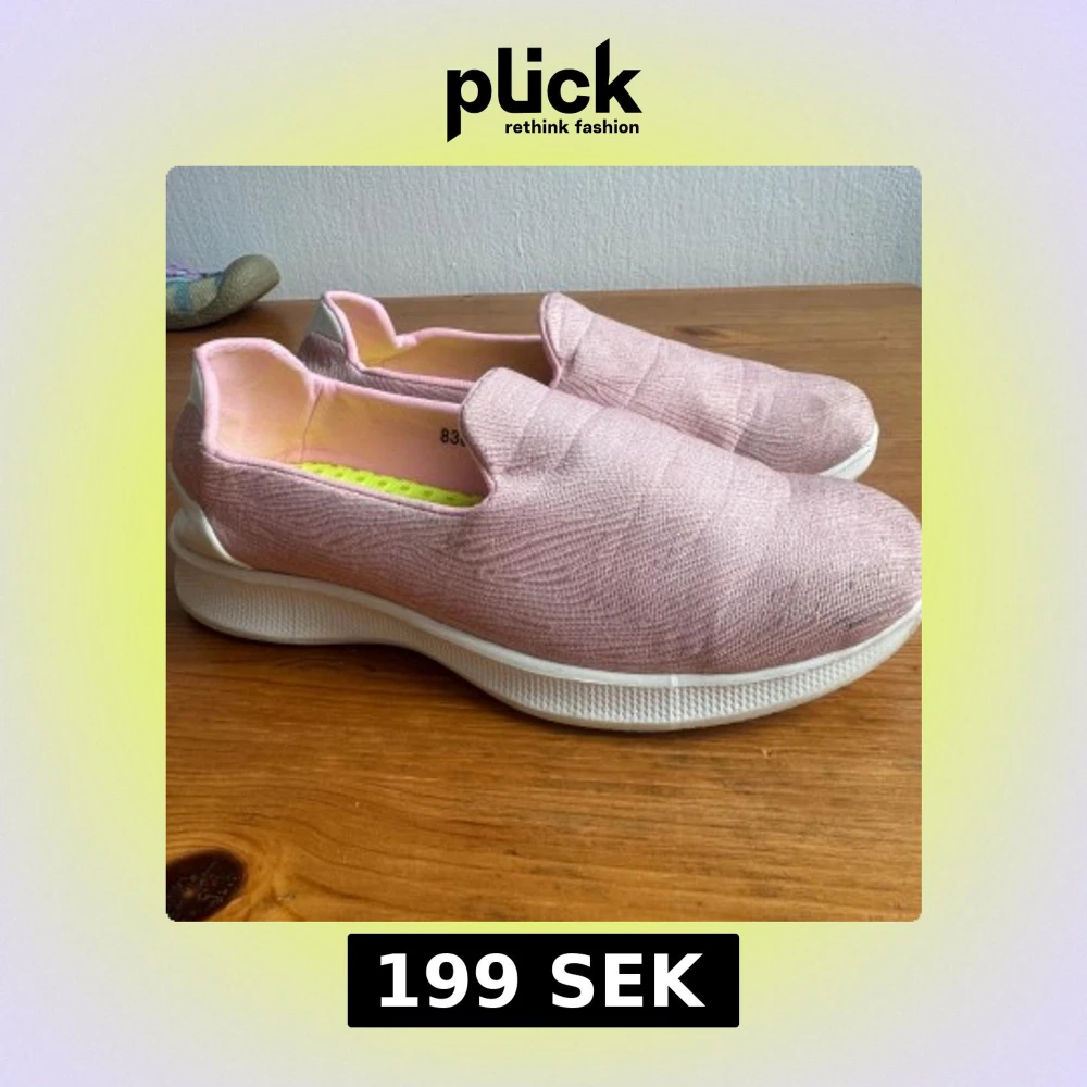 Bekväma rosa slip-in skor med vit sula och ljusgrönt foder. Perfekta för en avslappnad stil