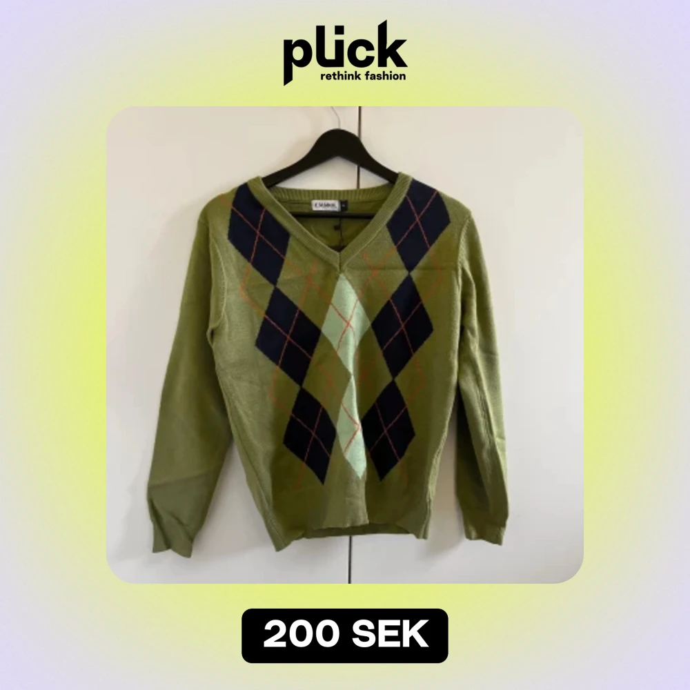 En olivgrön stickad tröja med argyle mönster från Emmiol. Storleken är M