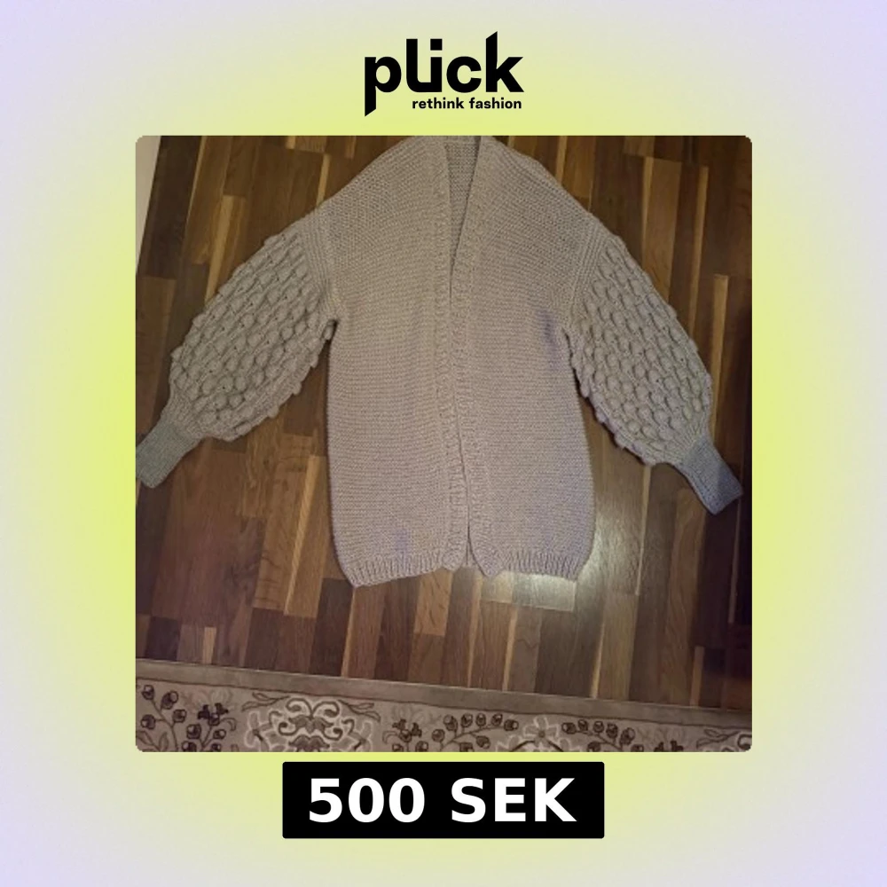 Beige stickad kofta med puffärmar