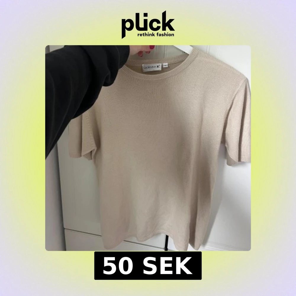 En stilren beige stickad tröja från Georgina B. med korta ärmar och rund halsringning. Tröjan har en enkel och clean look, perfekt för dig som gillar minimalistisk stil. Mjuk och skön kvalitet som passar året runt.