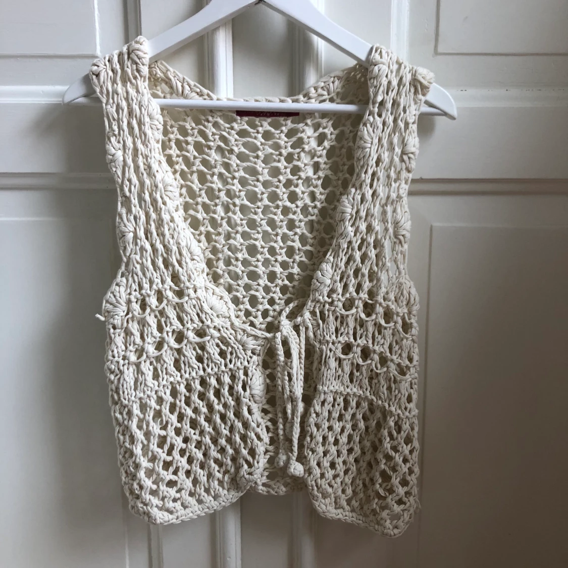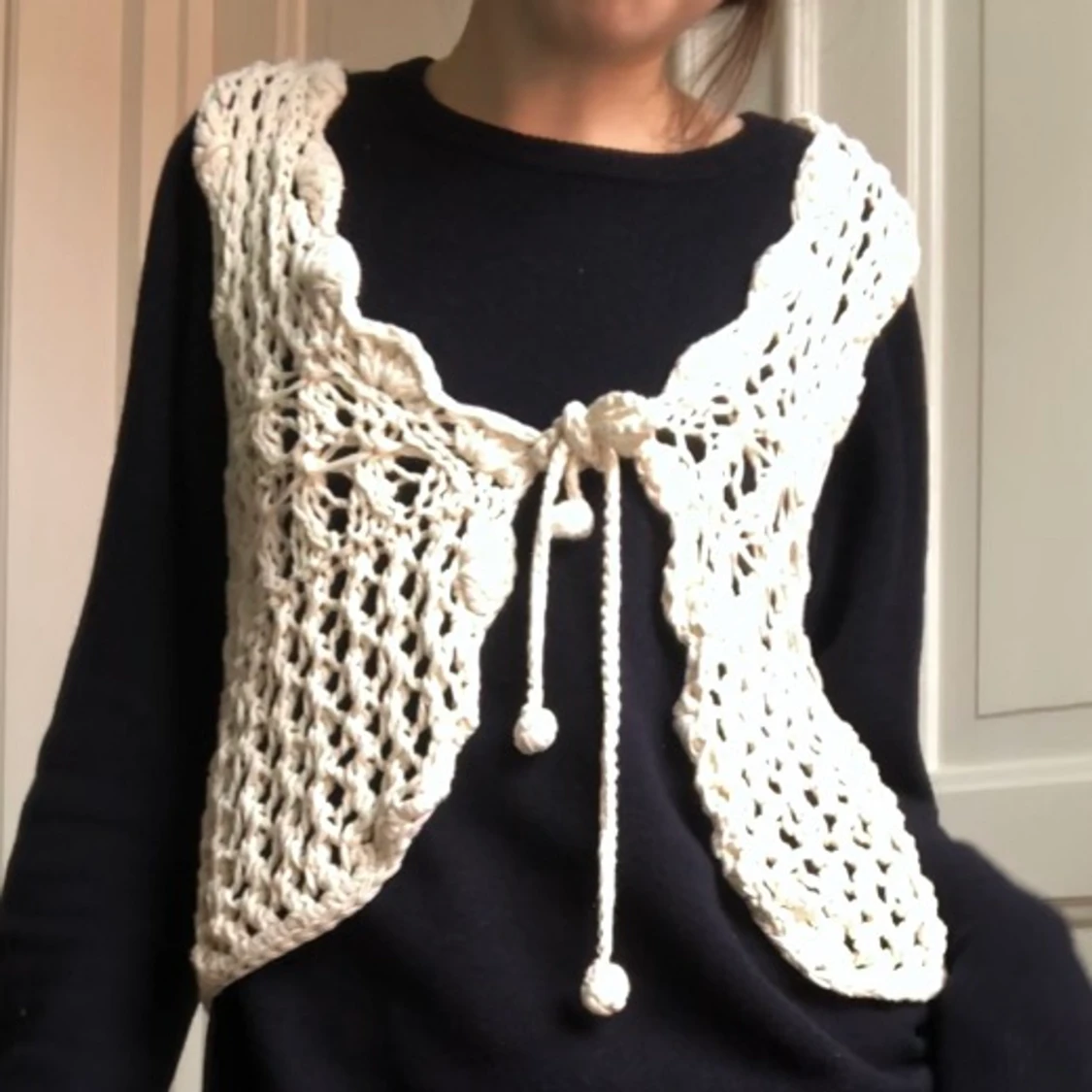 Jätte söt virkad väst bra skick storlek l men passar allt från xs