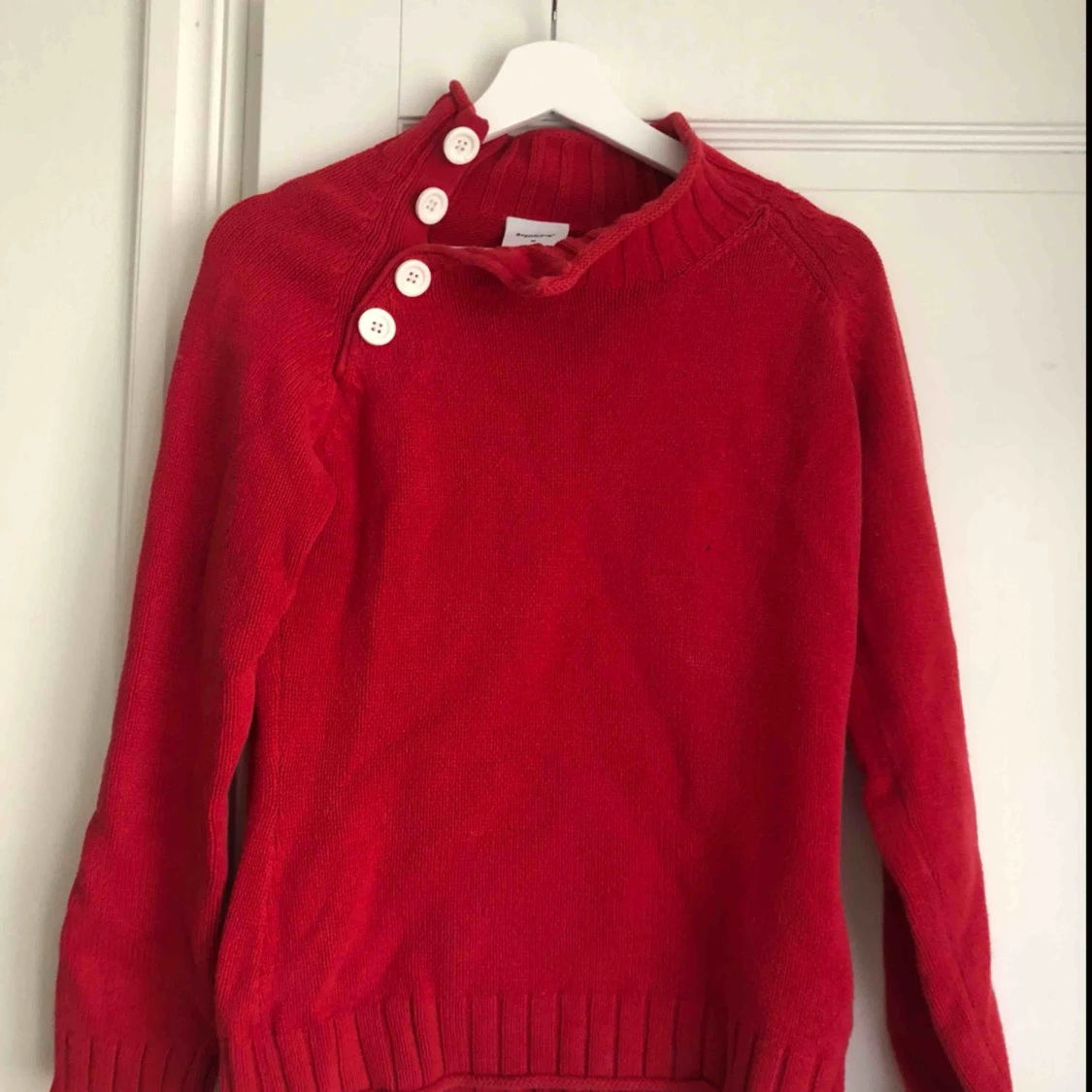En snygg och skön röd stickad tröja, perfekt nu till vintern:)