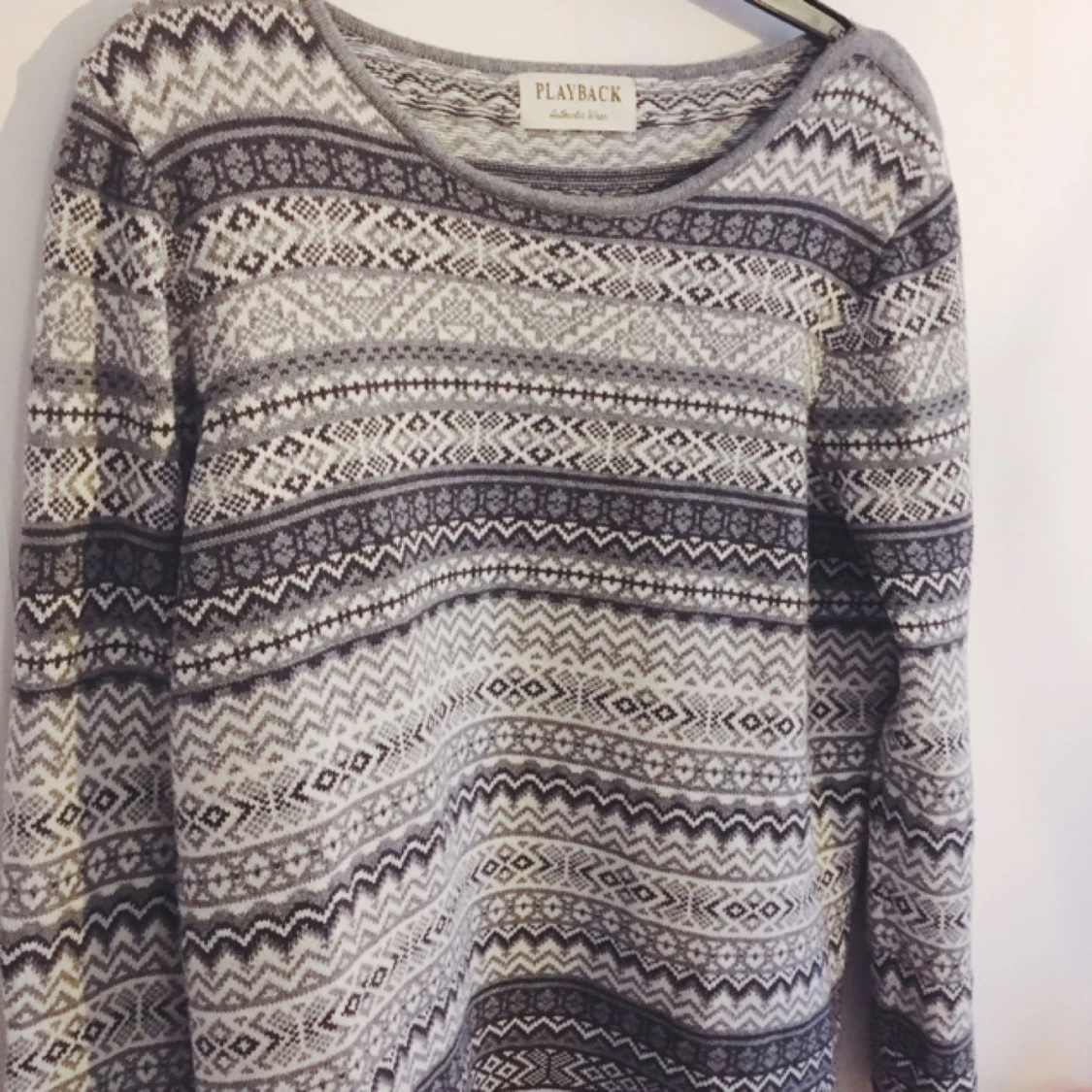 Mysig och din tröja som tyvärr bara ligger i garderoben. Hittar ingen storlek men skulle gissa på M-L eller S beroende på hur man vill att den ska sitta. Jag är vanligtvis en S (se sista bilden)