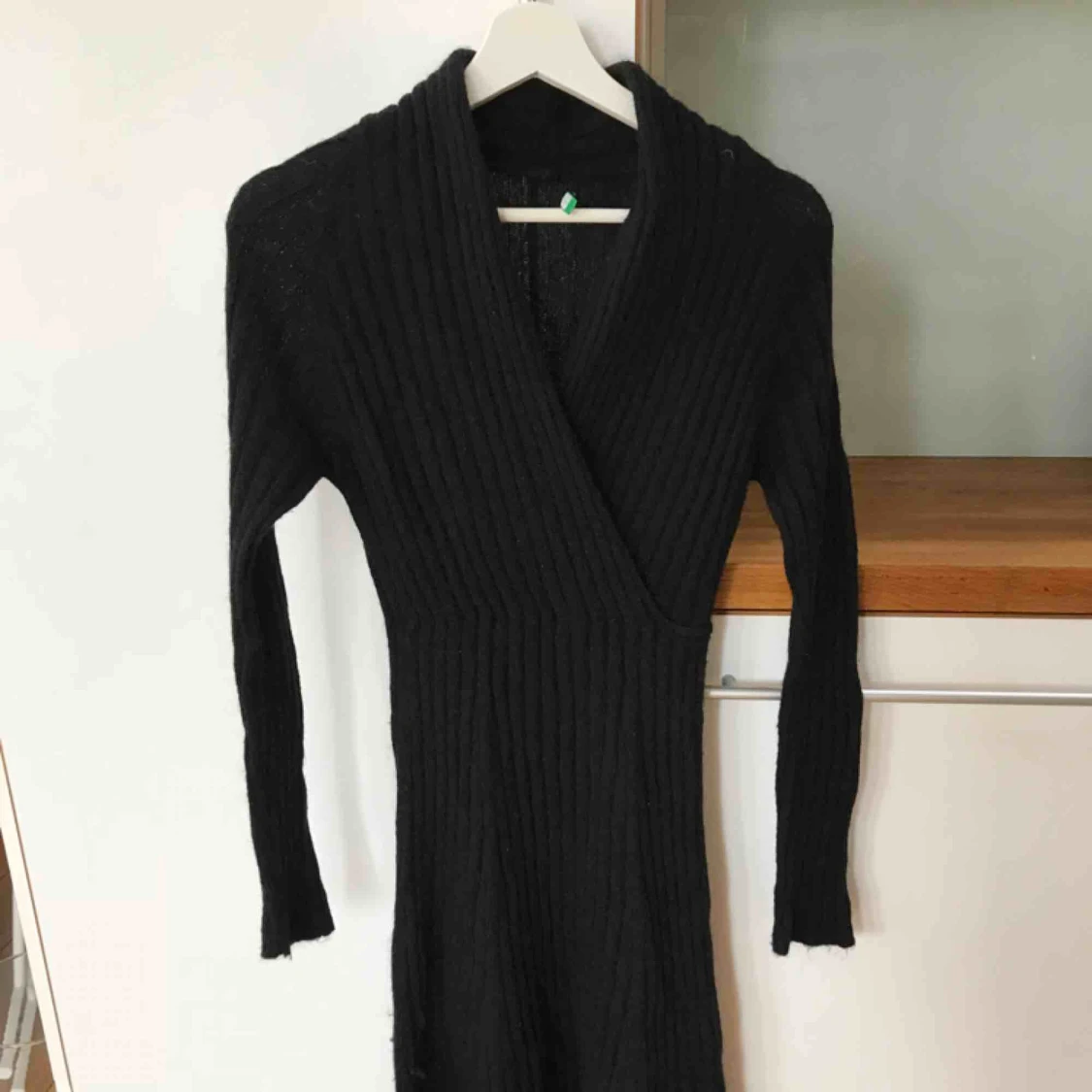 Ribbad stickad svart klänning från Benetton. Perfekt på vintern, varm och mysig.