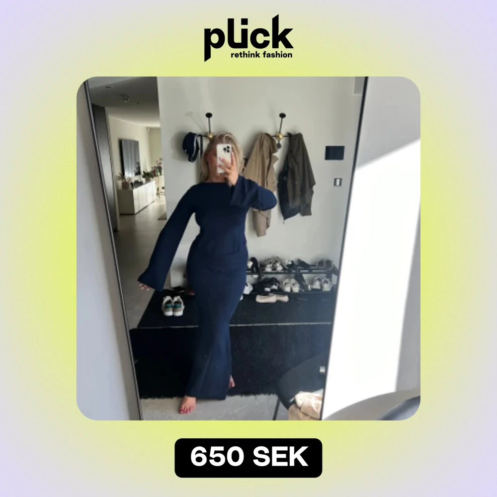 Marinblått set från Alobha i väldigt fint skick. Kommer med en topp som går att ha både med knyt fram eller bak, och en matchande lång kjol.