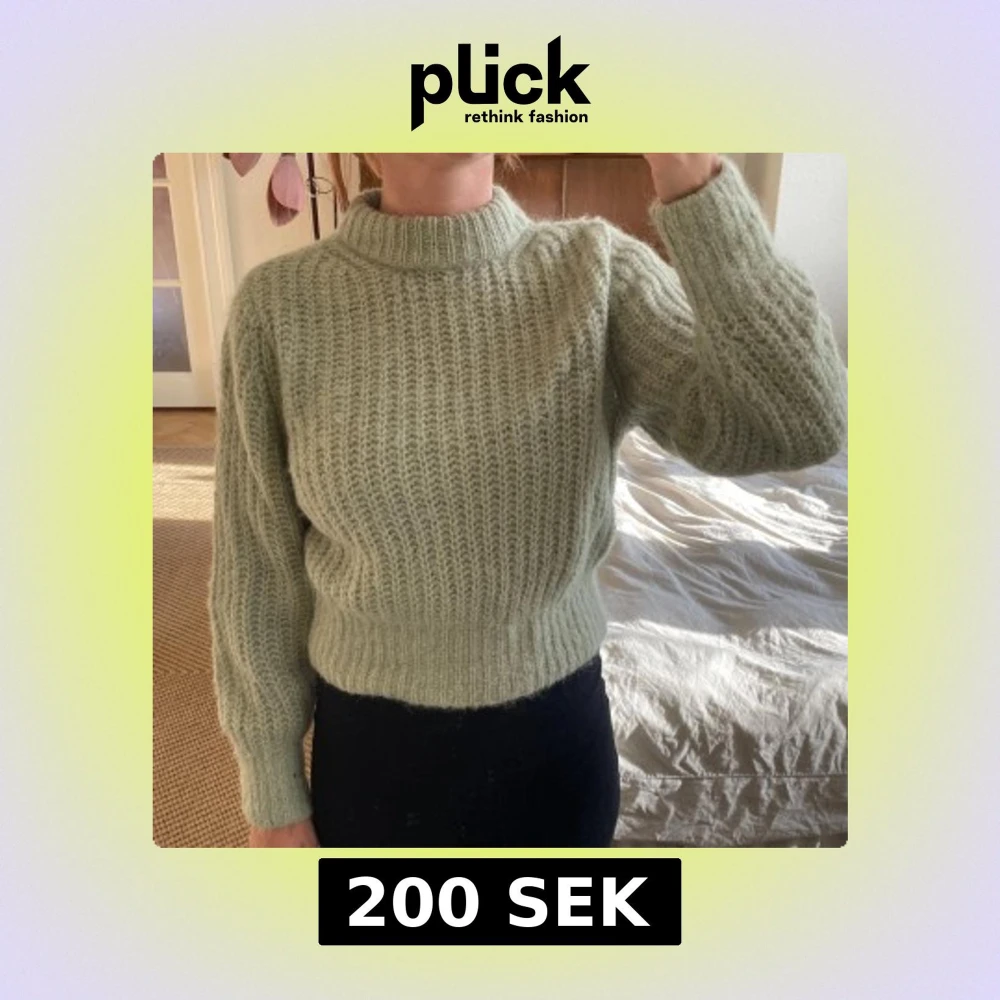 Stickad tröja i superfin pistagegrön färg, 60% ull 40% alpacka, gott skick!
