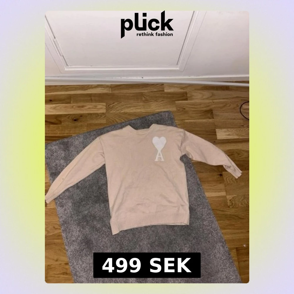 Säljer en beige stickad tröja från Ami med deras ikoniska hjärta och A-logga broderad på bröstet. Tröjan har rund halsringning, långa ärmar och ribbade muddar. Perfekt för dig som gillar stilrena och trendiga plagg. Passar även i xs väldigt bra!