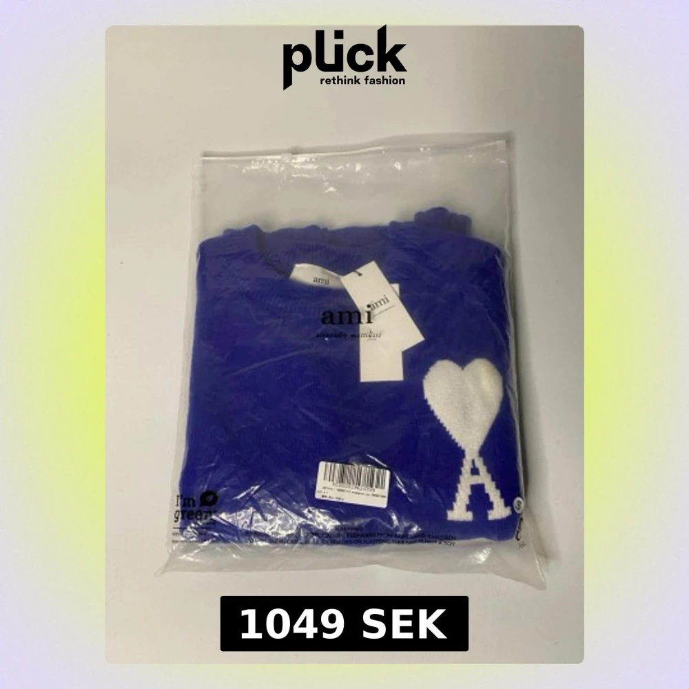Snygg blå stickad tröja från Ami Paris med vit hjärtlogga och bokstaven A på bröstet. Tröjan har rund hals, ribbade muddar och lång ärm. Perfekt för dig som gillar stilrena detaljer och vill ha något som sticker ut i garderoben.