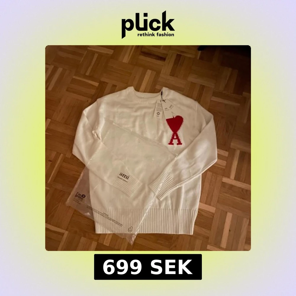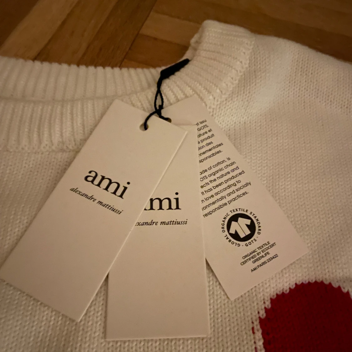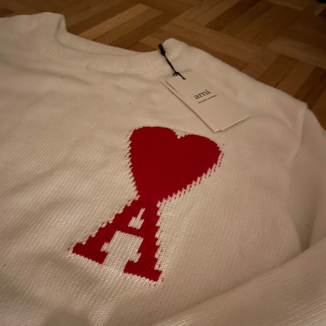 Hej! Jag säljer en vit ami Paris tröja med ett rött hjärta Storlek S! Fraktar samma eller nästa dag efter köpet✅📦