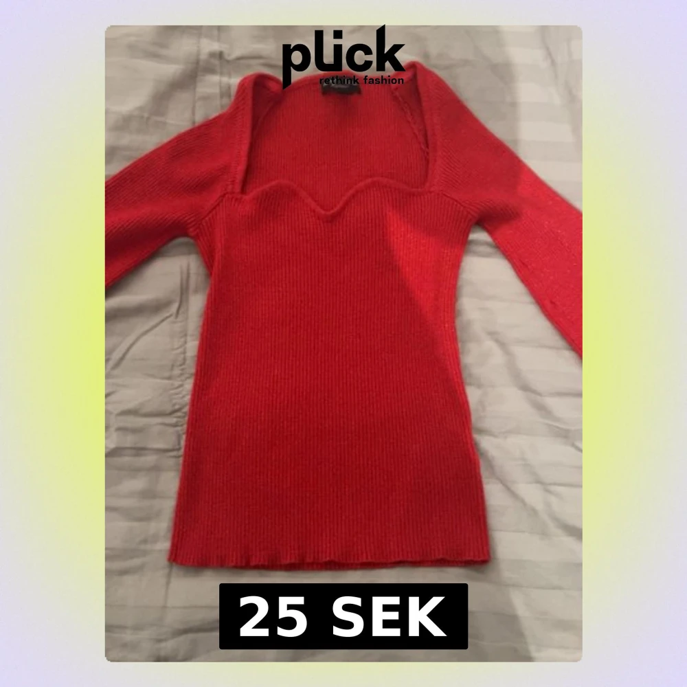 Säljer en röd glittrig topp från Amisu med långärmad design och snygg vågig halsringning. Modellen är slim och ribbad, vilket ger en schysst passform. Perfekt för dig som gillar färgstarka och stilrena plagg. Den är är väldigt stretchig💕