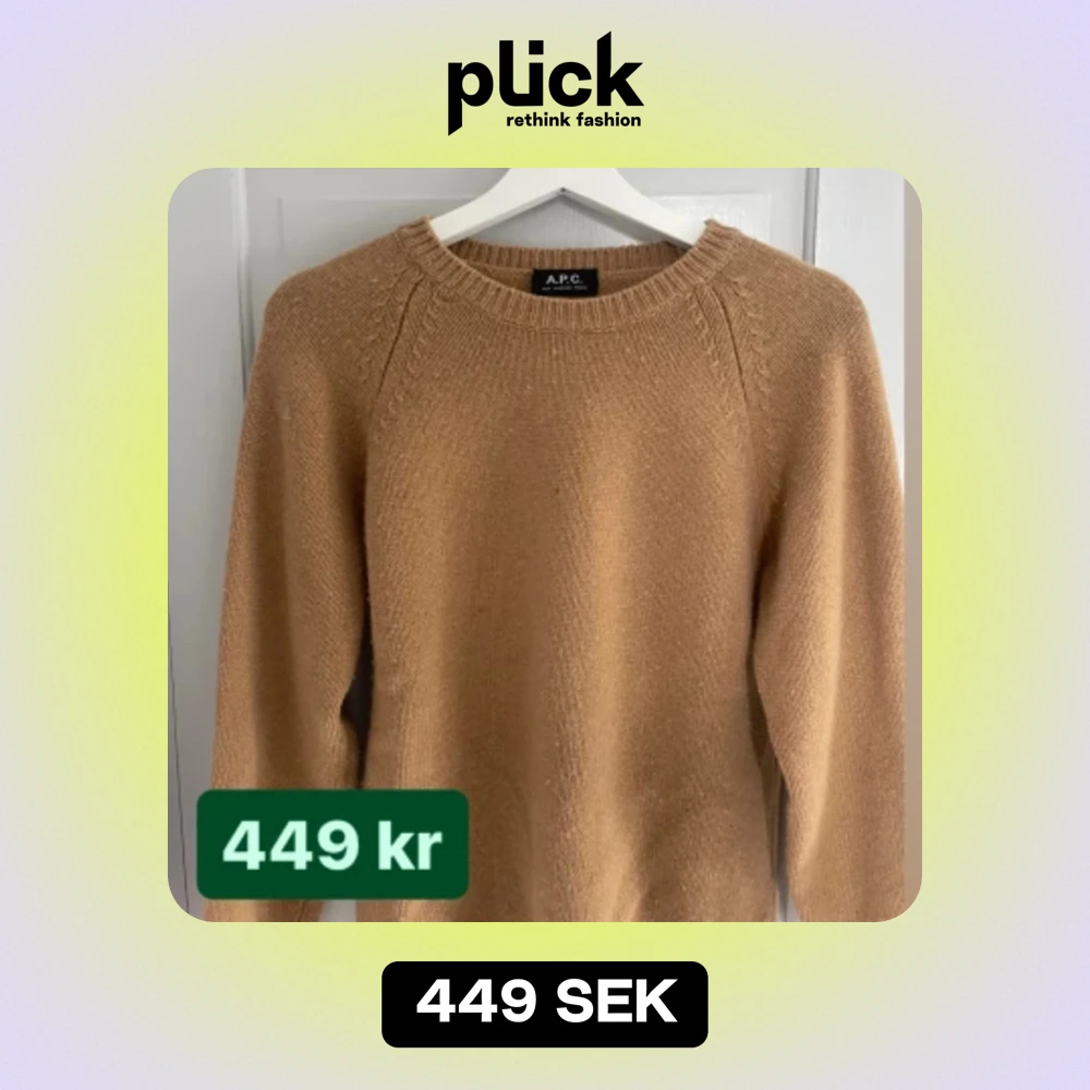 Beige stickad A.P.C tröja. Tjockt material. Köpt på NK för över 2000 kr. Storlek: M. Tryck på ”Köp Nu” för att köpa.