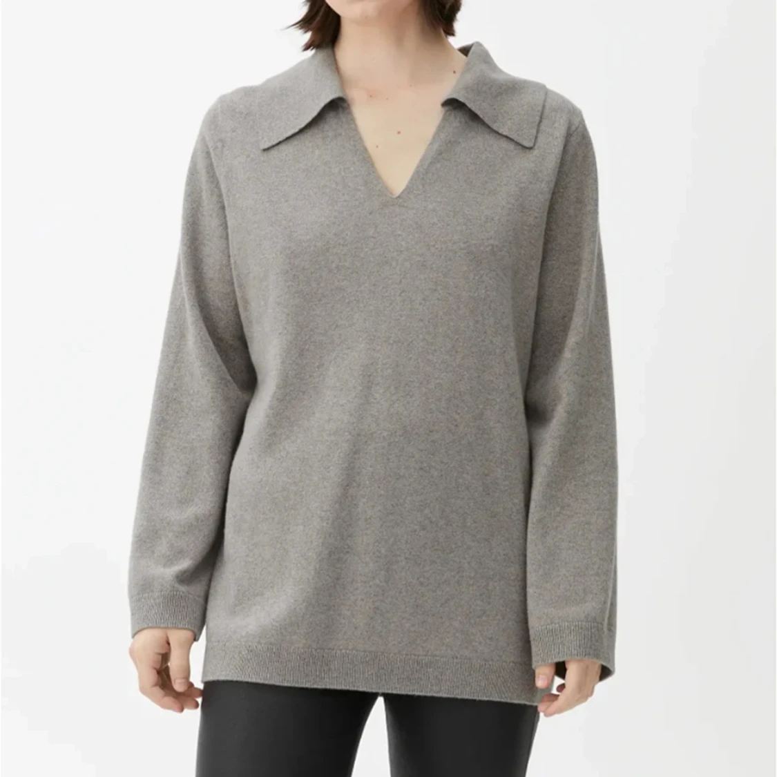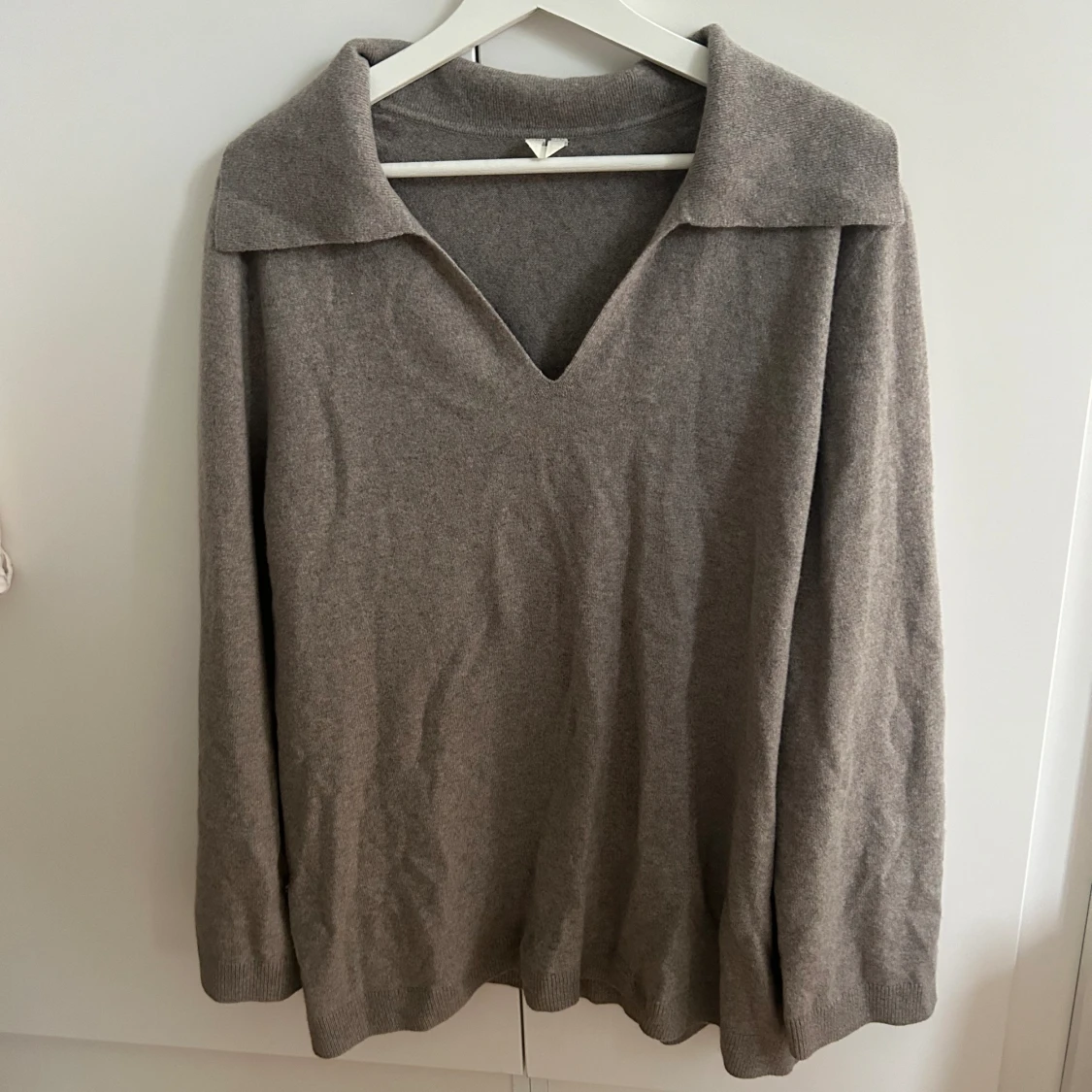 Arket polo collar cashmere jumper i grå. Gjord i en blandning av kashmir (78%) och ull (28%). Den är i storlek S och är ledig i passformen. Har använt denna ett fåtal gånger och alltid med t-shirt under så den är i fint skick. Nypris 1750kr.