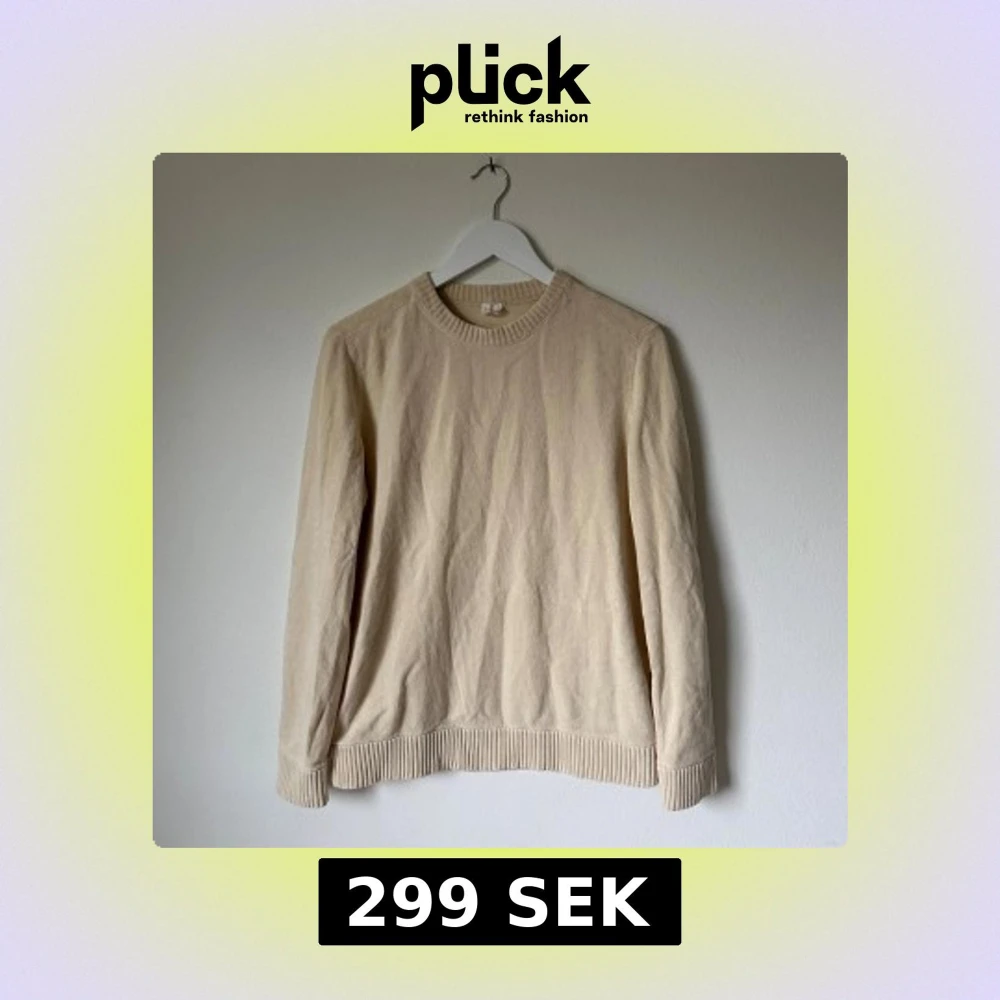 Säljer en stilren beige stickad tröja från Arket i storlek S. Tröjan har rund hals, ribbade muddar vid ärmslut och nederkant samt långärmad passform. Perfekt för dig som gillar enkel och clean look med mjukt material. 4D3