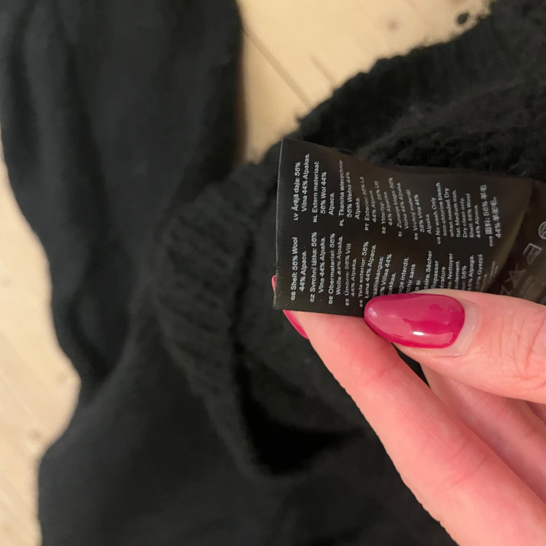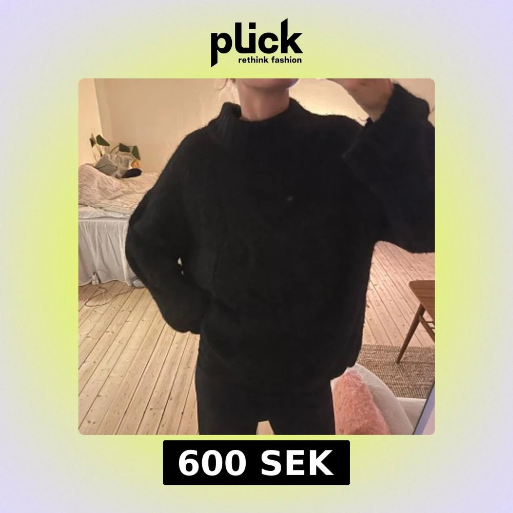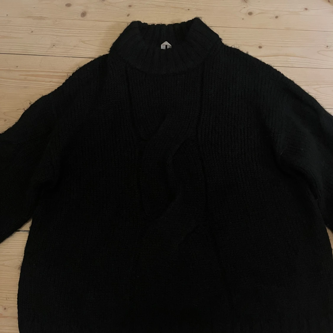 Stickad tröja från ARKET i 100% ull (alpacka/ull) med en flätad detalj fram och på sidan! Ganska hårig i materialet, och lite halvpolo/hög krage! Oversize Har använts så finns början på noppor/lite textur i ullen, syns på bild! 🩵