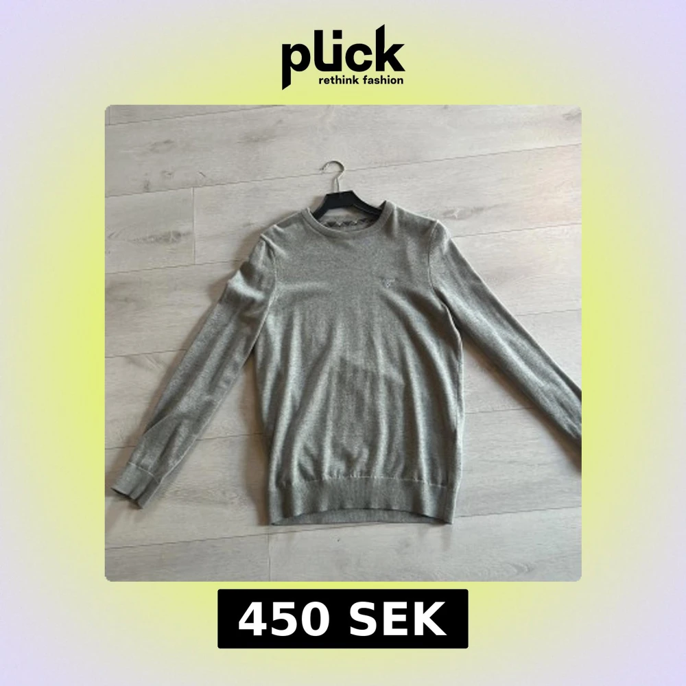 Säljer en klassisk grå stickad tröja från Barbour med rund halsringning och diskret broderad logga på bröstet. Använd 5-10 gånger men är som ny!
