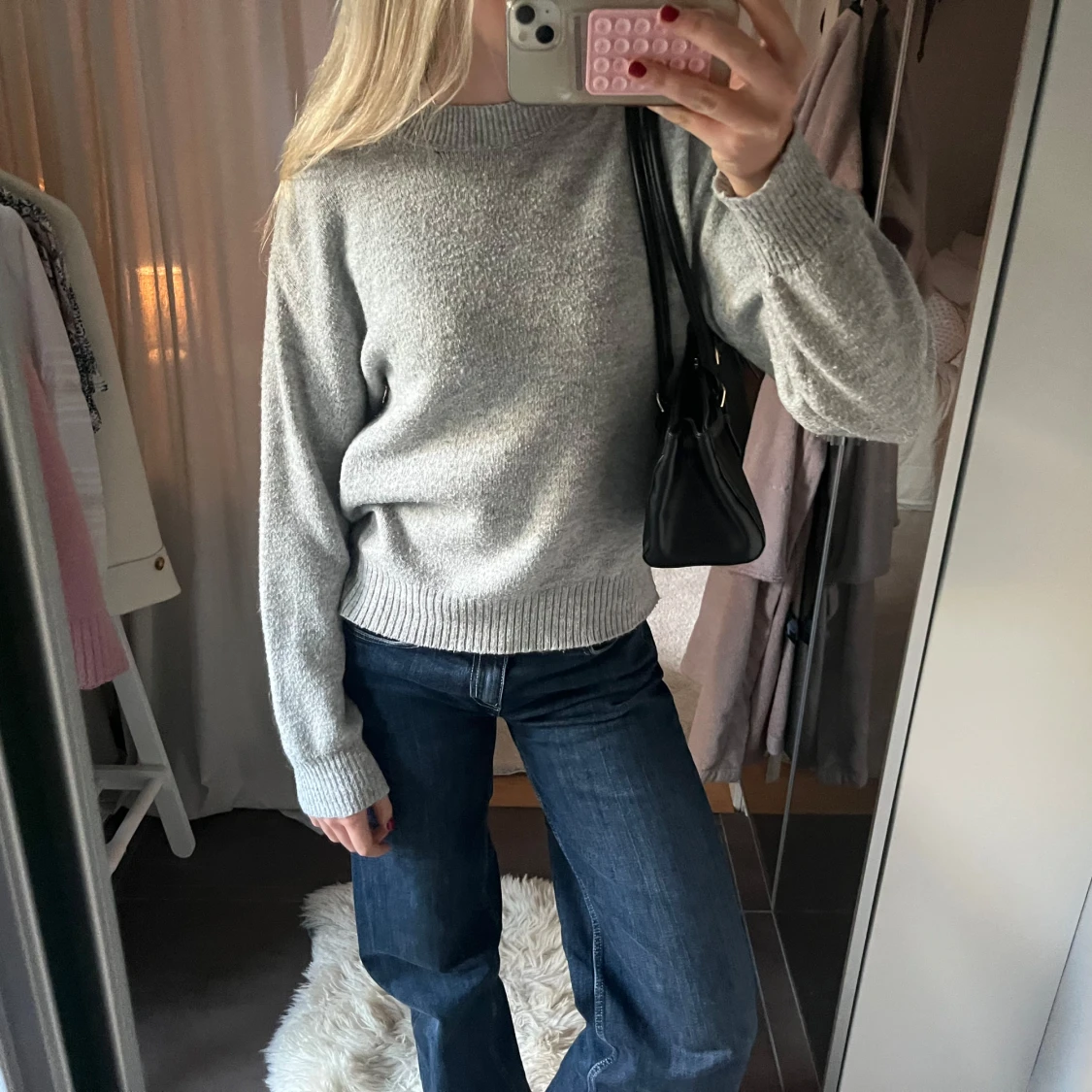 As snygg stickad! Perfekt till hösten. Storlek xs men passar mellan xs-m (jag har vanligtvis s/m) Material: 54% polyester 8%ull 36% acrylic