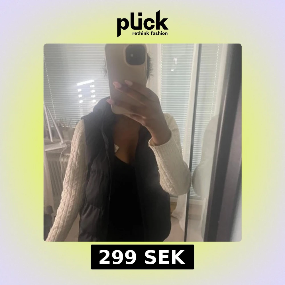 Säljer en svart dunväst med hög krage och dragkedja framtill. Västen har en enkel och stilren design som passar perfekt över en stickad tröja. Den är lätt vadderad och har en klassisk passform.