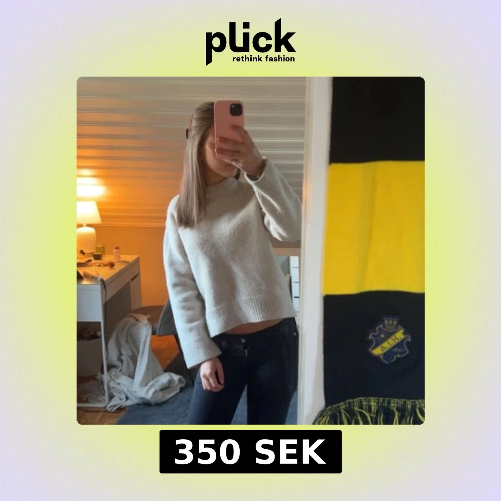 Supermysig begie stickad tröja från H&M i ull- och kashmirblandning. Tröjan har en klassisk rund halsringning, ribbade muddar och lång ärm. Perfekt för lager på lager under kyliga dagar. Kostar nog runt 800 nu eftersom de ull- Kashmir