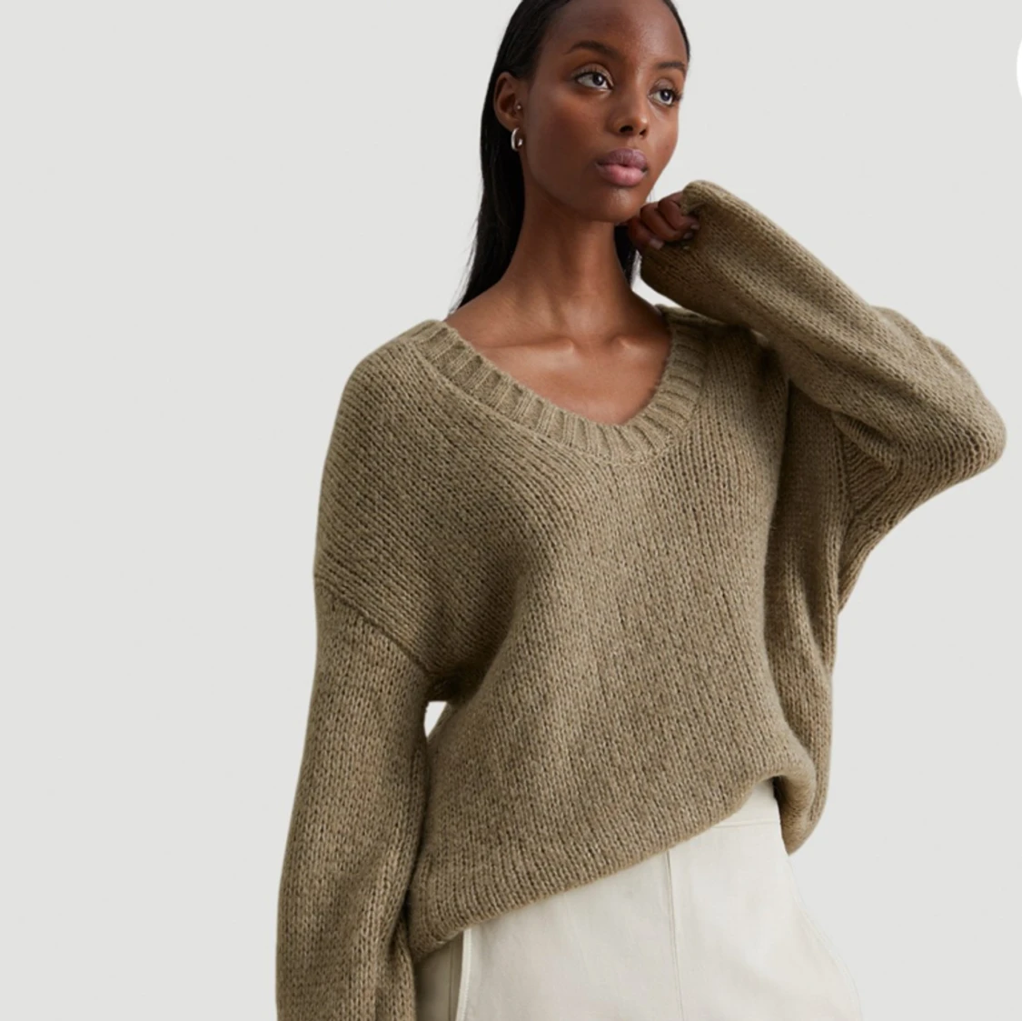 Stickad tröja med knyte bak, tröjan kan användas på två olika sätt. Se bild!