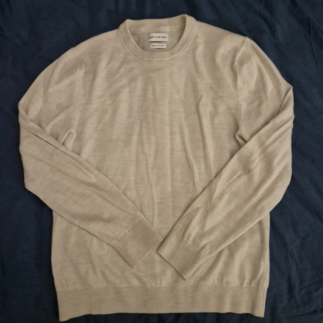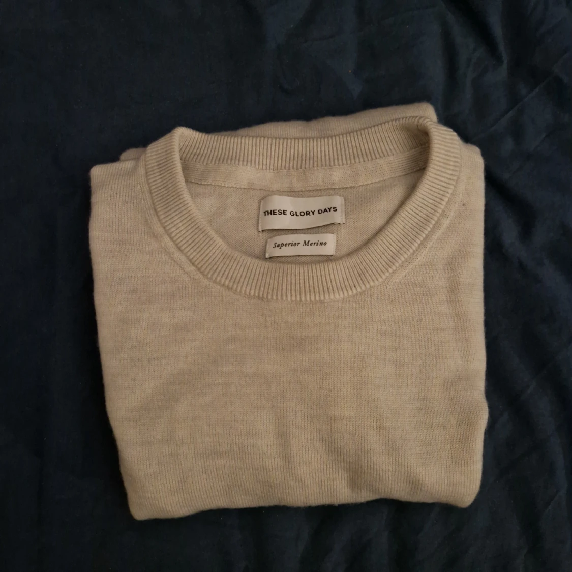 Snygg beige tröja från These Glory Days i mjuk och exklusiv merinoull. Klassisk rund halsringning och långa ärmar. Perfekt för lager-på-lager och enkel att matcha med olika outfits. Stilren och tidlös design som funkar året runt.