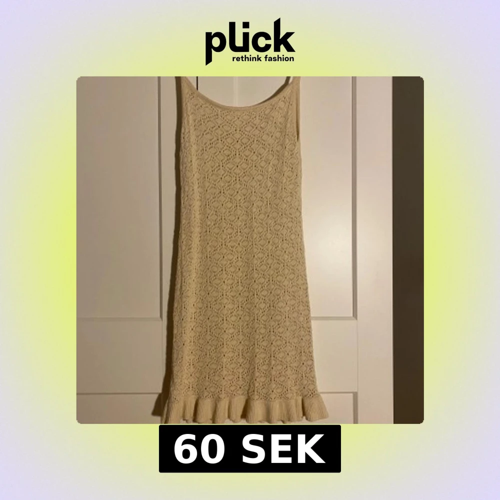 Supersöt beige klänning från H&M med spetsmönster och volangkant nertill. Ärmlös modell med smala axelband och en mjuk känsla. Perfekt för sommarens alla tillfällen och enkel att styla med sneakers eller sandaler.