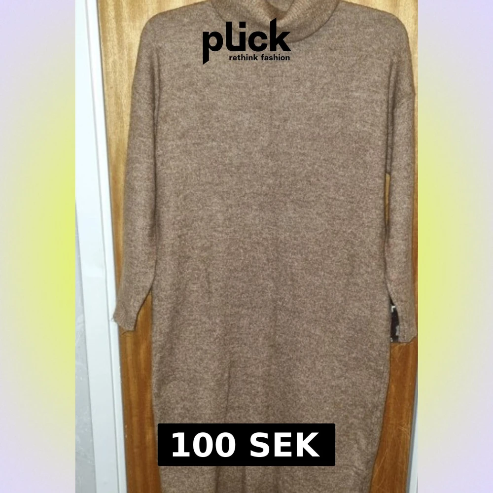 Mysig beige stickad klänning med polokrage och trekvartsärm. Perfekt för kyligare dagar och enkel att styla med boots eller sneakers. Rak passform och mjukt material som känns skönt mot huden. Storlek xs men kan passa som S