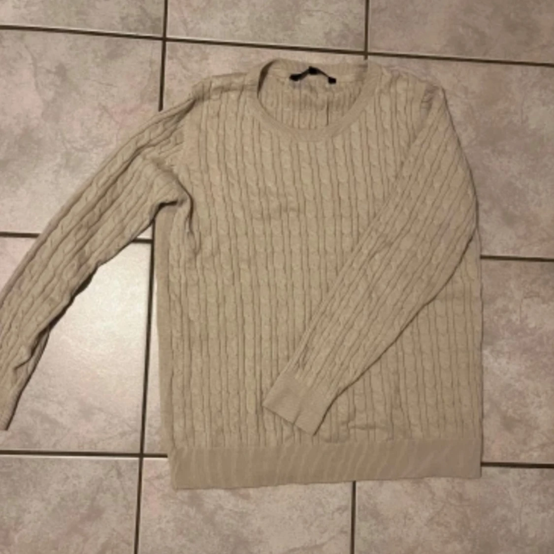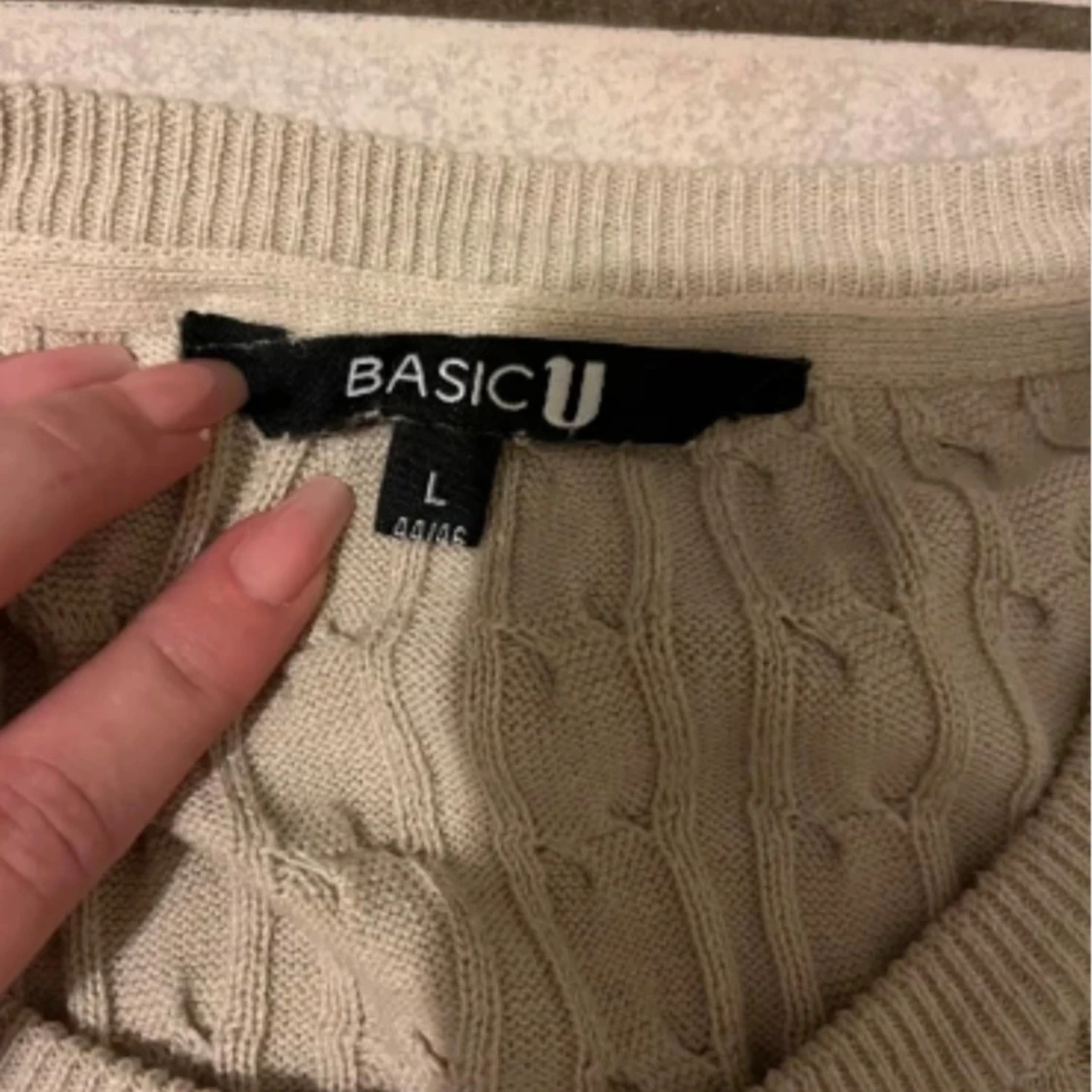 Säljer en beige stickad tröja från Basic U. Tröjan har ett klassiskt flätmönster och långa ärmar. Perfekt för kyligare dagar. Passar bra till både jeans och kjol. Skriv vid frågor💗