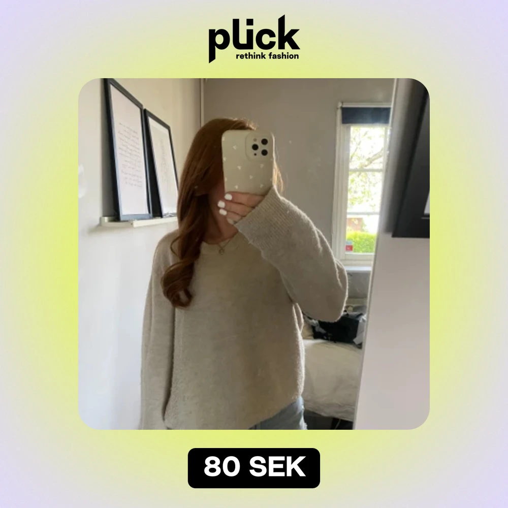 Fin stickad tröja i storlek L men jag som vanligtvis har Xs har den som oversized,perfekt att bara slänga på sig om man fryser lite💞