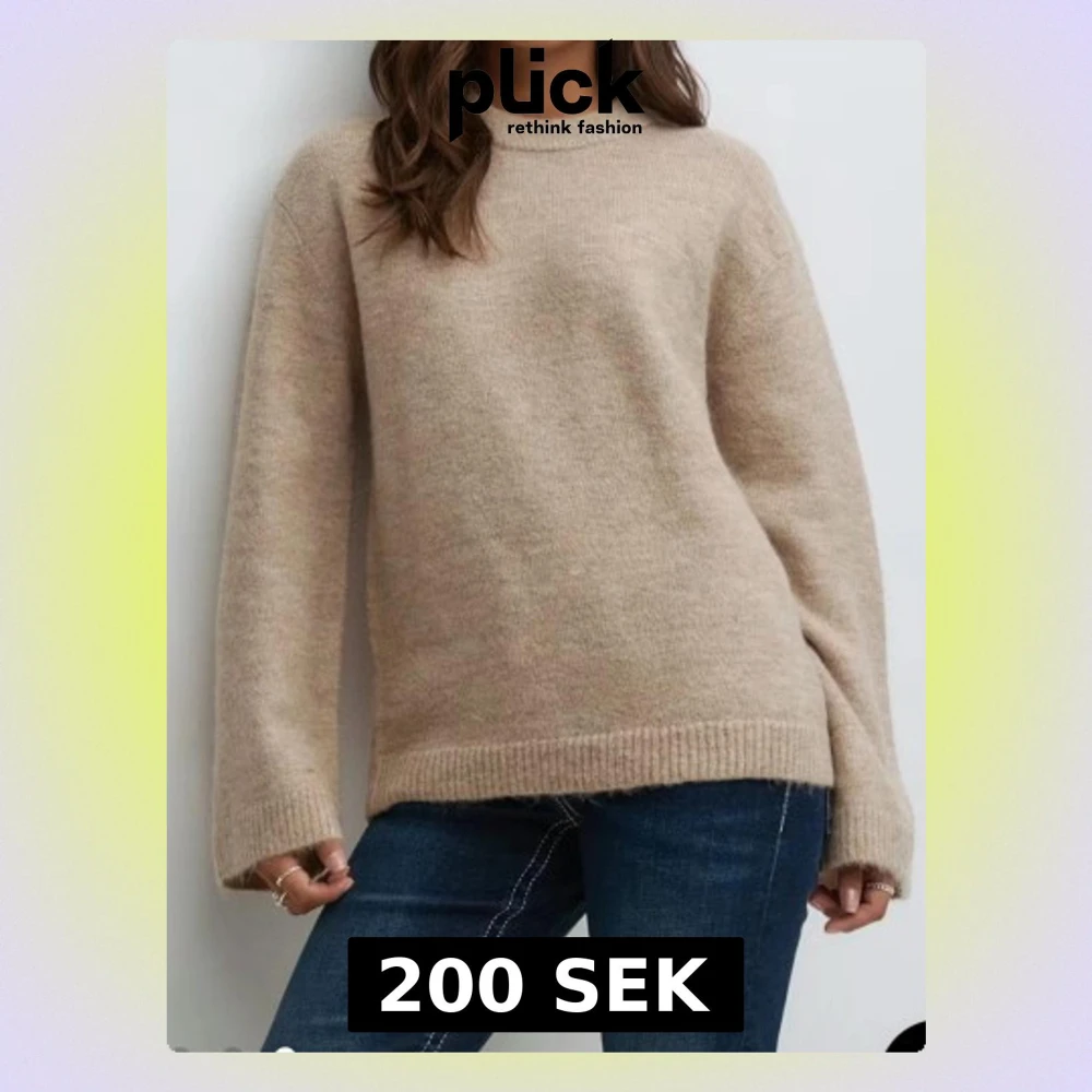 Mysig beige stickad tröja med rund hals och långa ärmar. Från Gina aldrig använt!