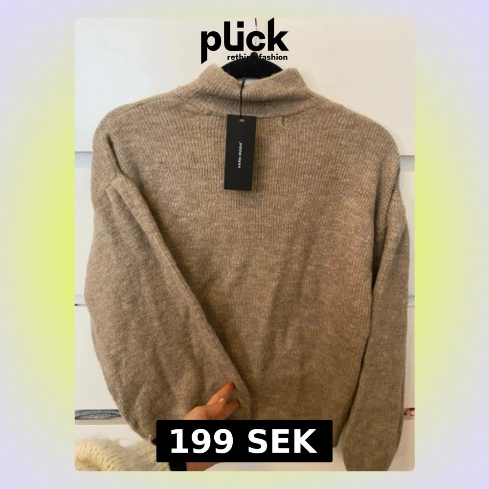 HELT NY. Mysig beige stickad tröja från vero Moda.med hög krage och långa ärmar. Tröjan har en enkel, stilren design och är ribbstickad upptill. Perfekt för lager på lager och en avslappnad look. Jättelen
