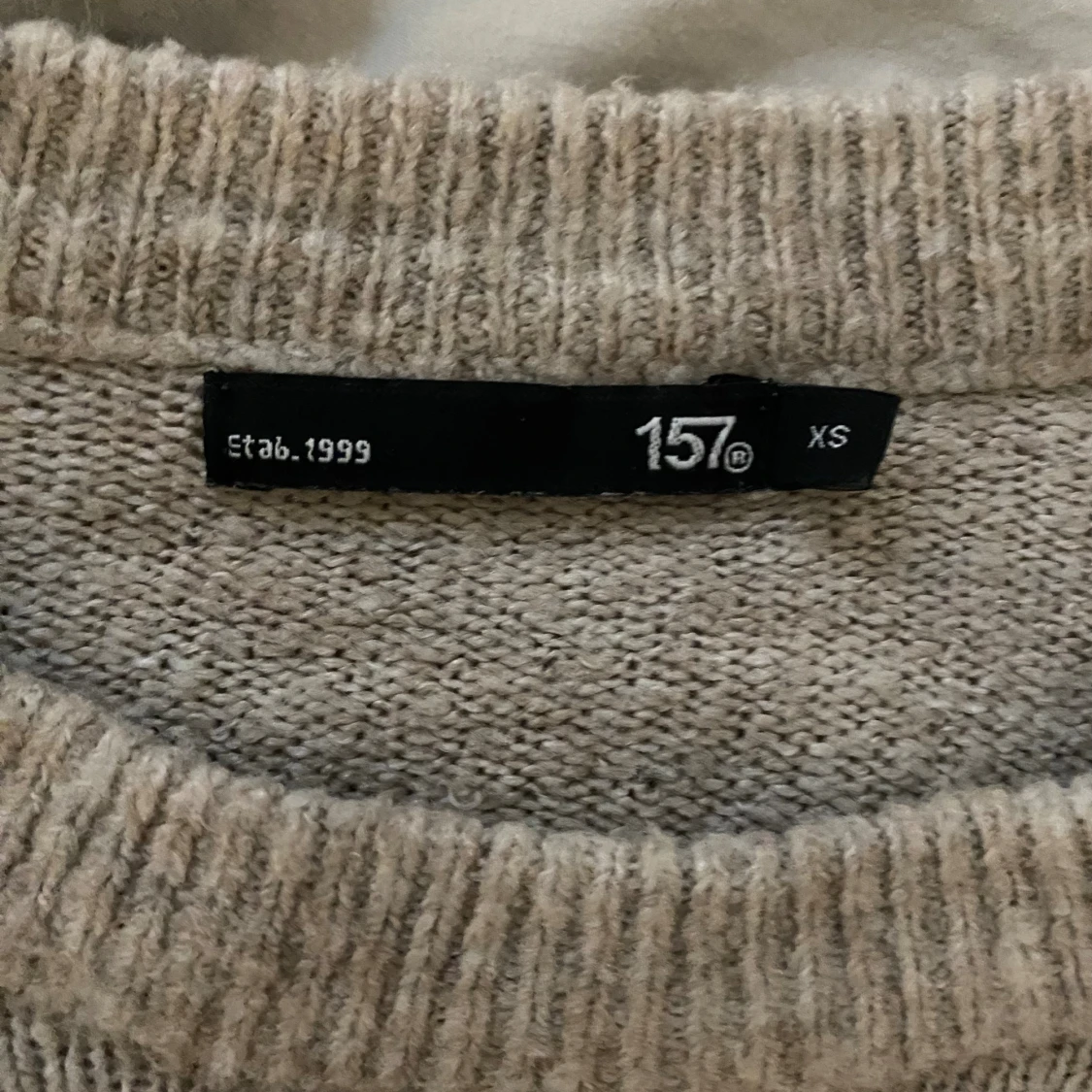 Mysig beige stickad tröja från Lager 157 i storlek XS. Aldrig använt, köpt men va för liten. Passar bra men är kort i armen, pga att jag vanligt vis har storlek S!💛