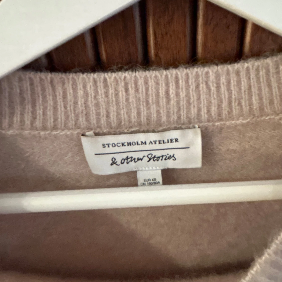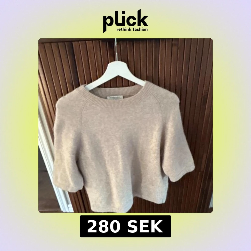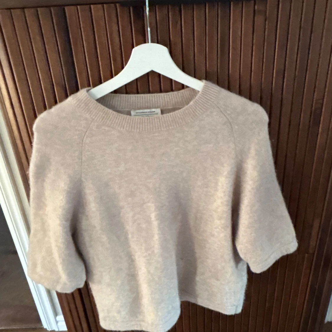 Mysig beige stickad tröja från & Other Stories med rund halsringning och kortare ärmar. Öppen att sänka priset!!