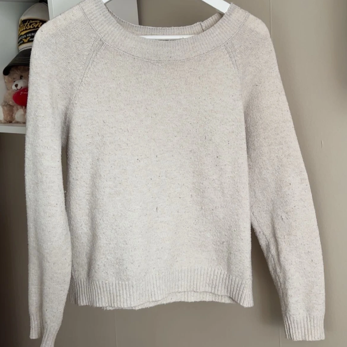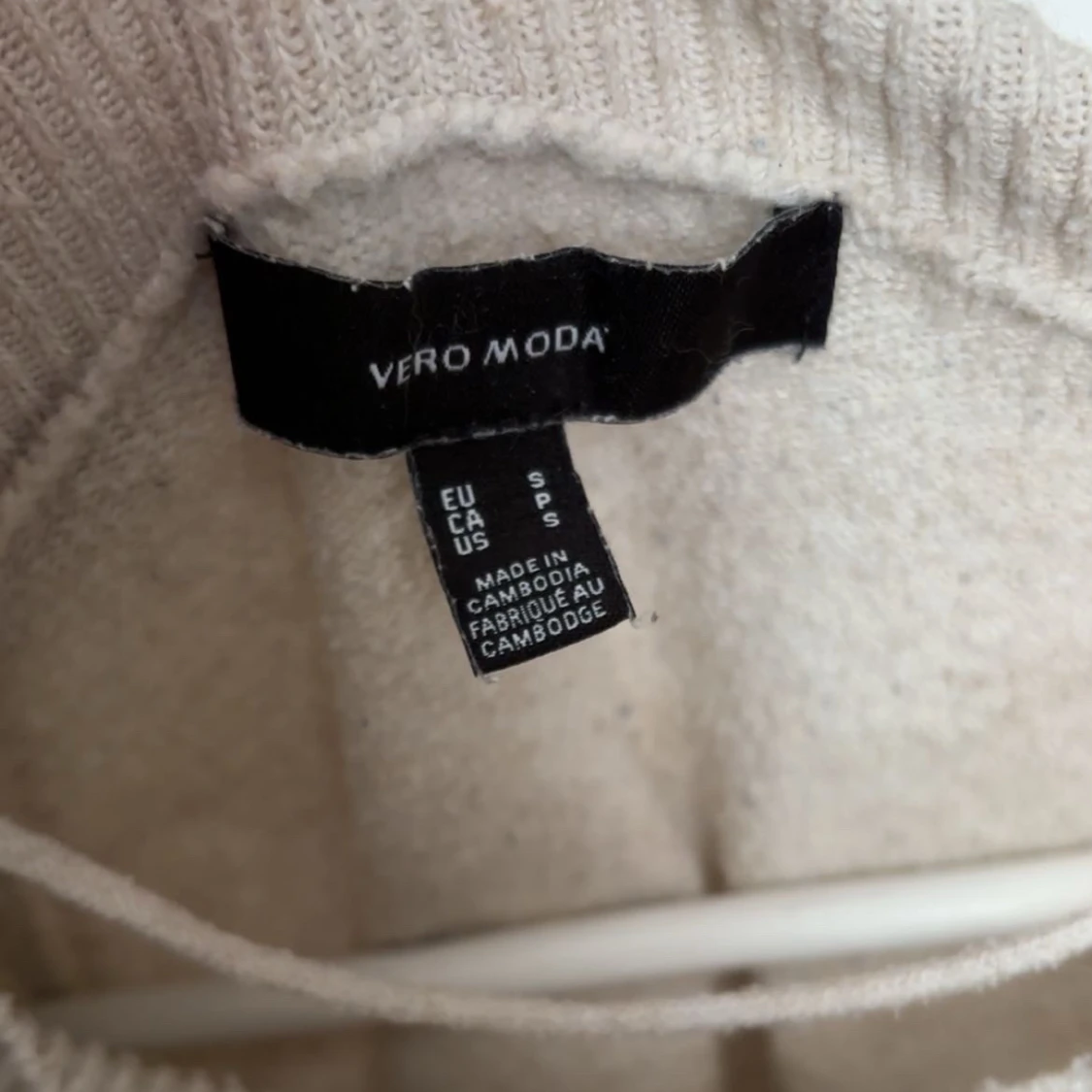 Mysig beige stickad tröja från Vero Moda med rund halsringning och ribbade muddar vid ärmslut. Klassisk och stilren design som funkar året runt.