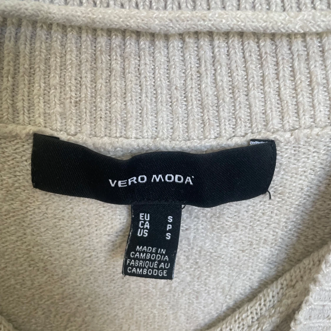 Mysig beige stickad tröja från Vero Moda med rund halsringning och ribbade muddar. Perfekt för lager-på-lager och enkel att matcha med olika outfits.