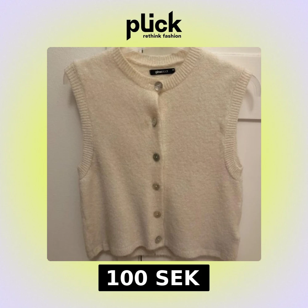 Supermysig beige stickad väst från Gina Tricot med rund halsringning och stora knappar framtill.