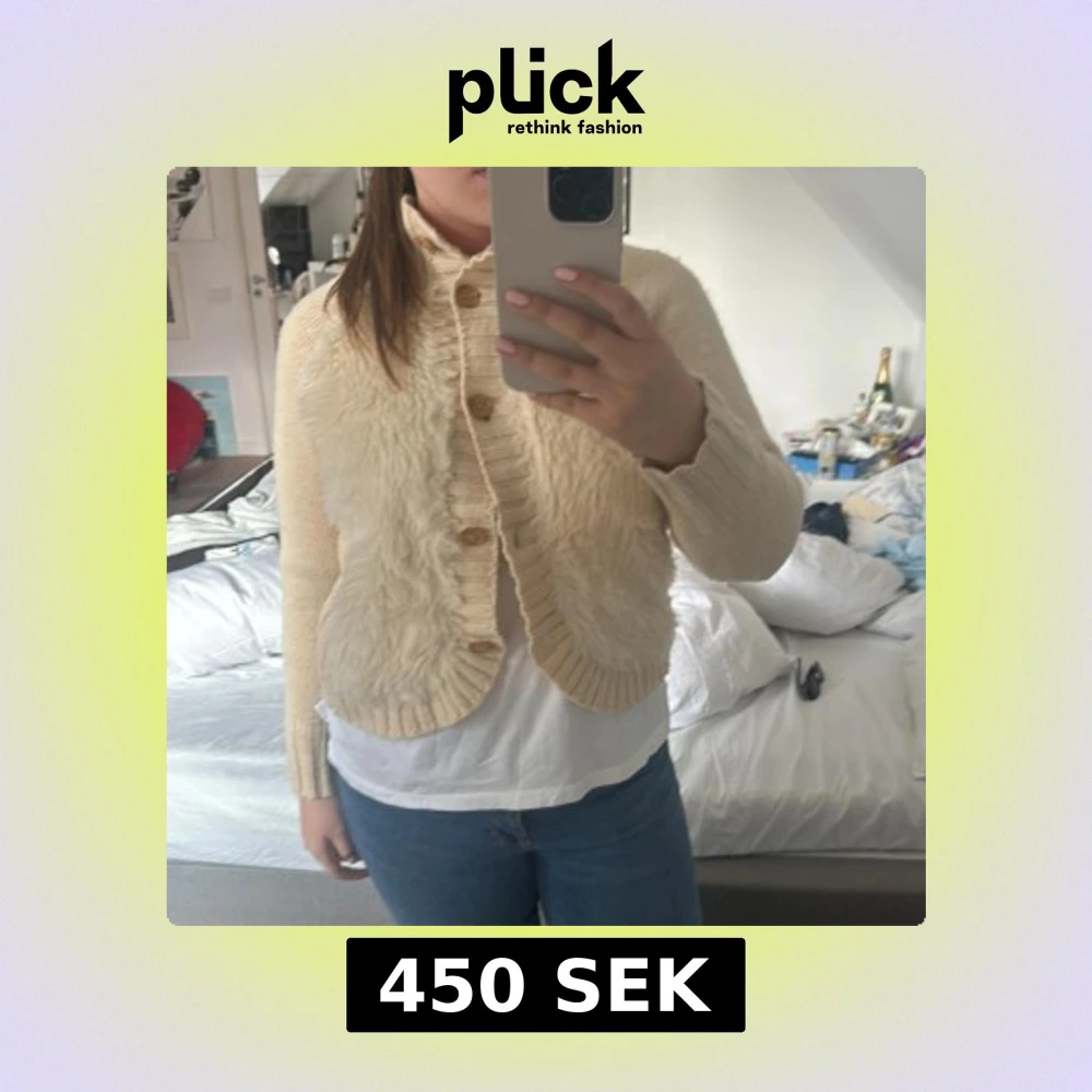 Säljer en snygg beige stickad väst från Morgan med pälsdetaljer framtill. Västen har knappar och en ribbad krage som ger en stilren look. Perfekt för att hålla sig varm och trendig. Snygg till skidsemester men för liten på mig! Passar som en M/S brukar ha L