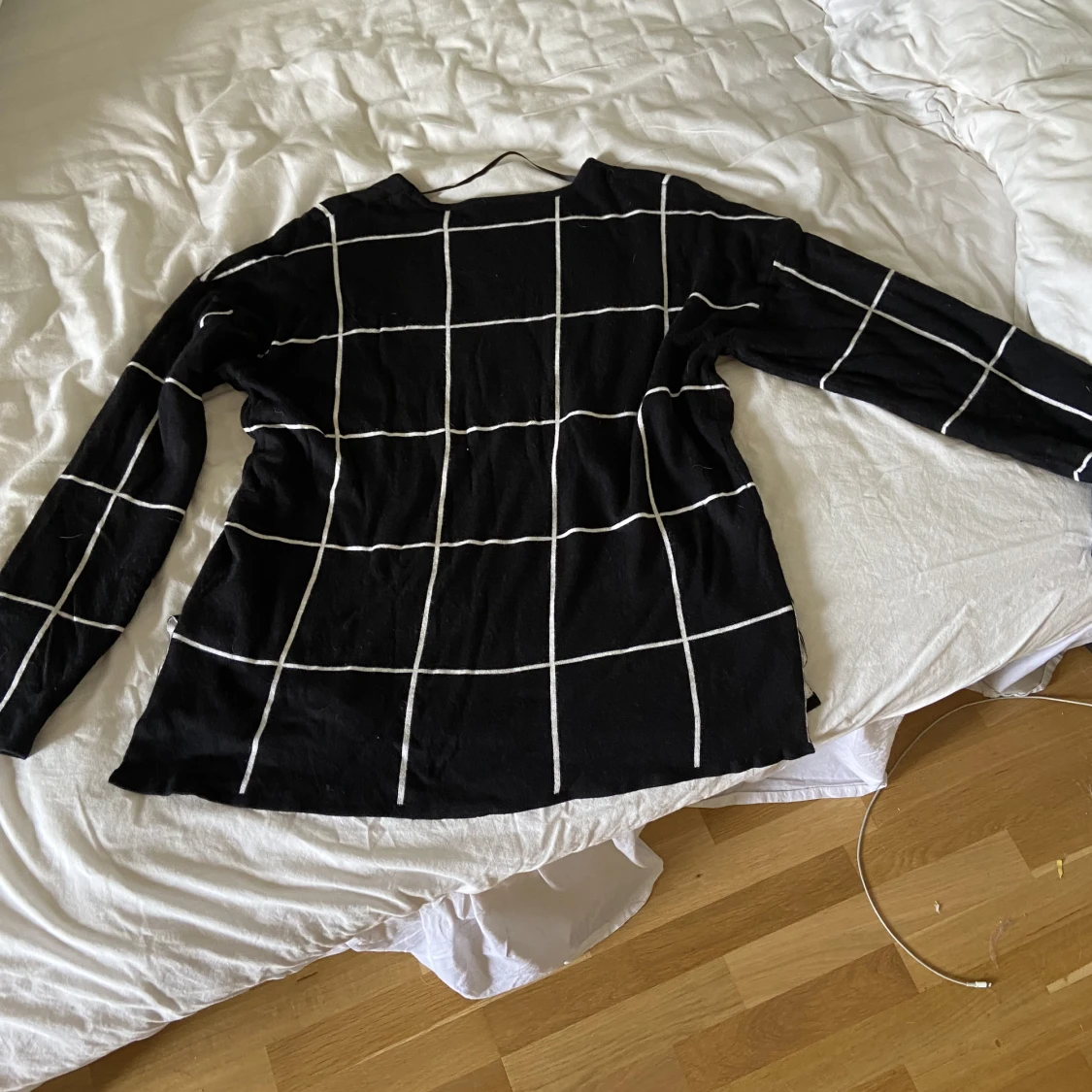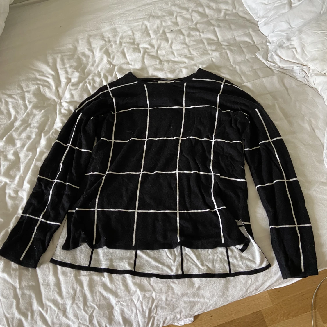 Svart tröja med vita ränder. Inga defekter. 🤩Är i storlek large men passar super på en M.