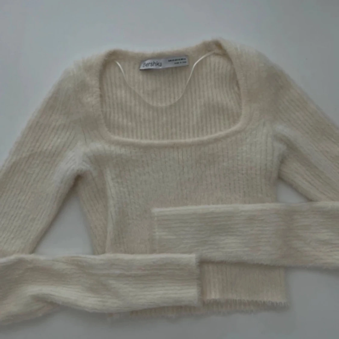 Säljer en Cream-vit croppad topp från bershka i mjukt material, säljer då den är för liten på mig💕