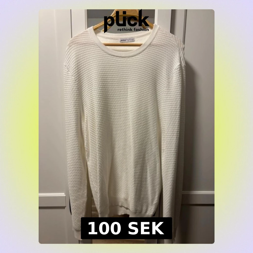 Säljer en vit långärmad tröja från Bershka i storlek XL. Tröjan har ett ribbat mönster och rund halsringning. Materialet känns mjukt och lätt, perfekt för lager-på-lager under kyliga dagar. Enkel och stilren design som funkar till många olika outfits.