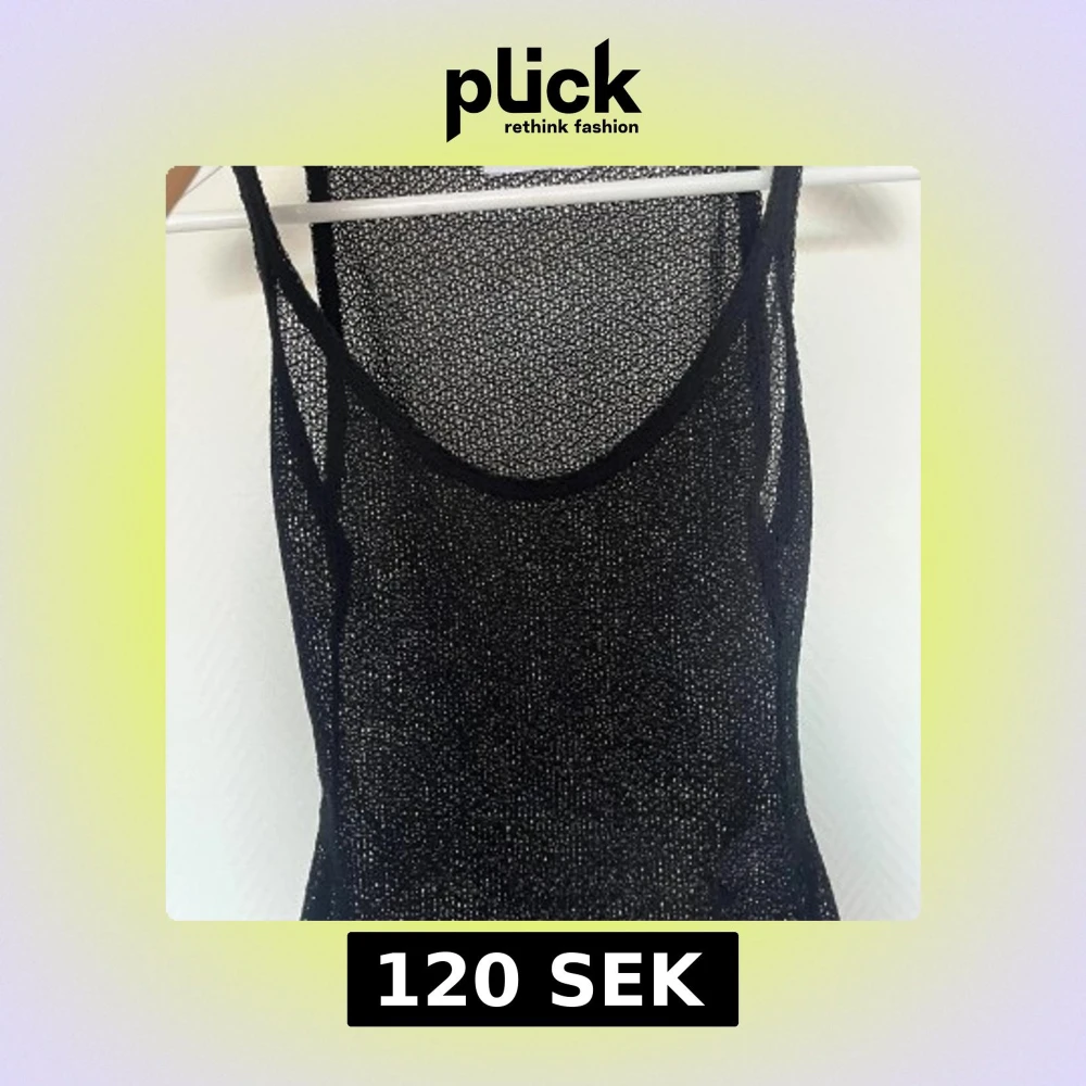 Snygg svart stickad linne med rundad halsringning. Materialet är genomskinligt och ger en cool mesh-effekt, perfekt för att skapa en edgy look. Passar dig som gillar att sticka ut och vill ha något unikt i garderoben. (Aldrig använd)