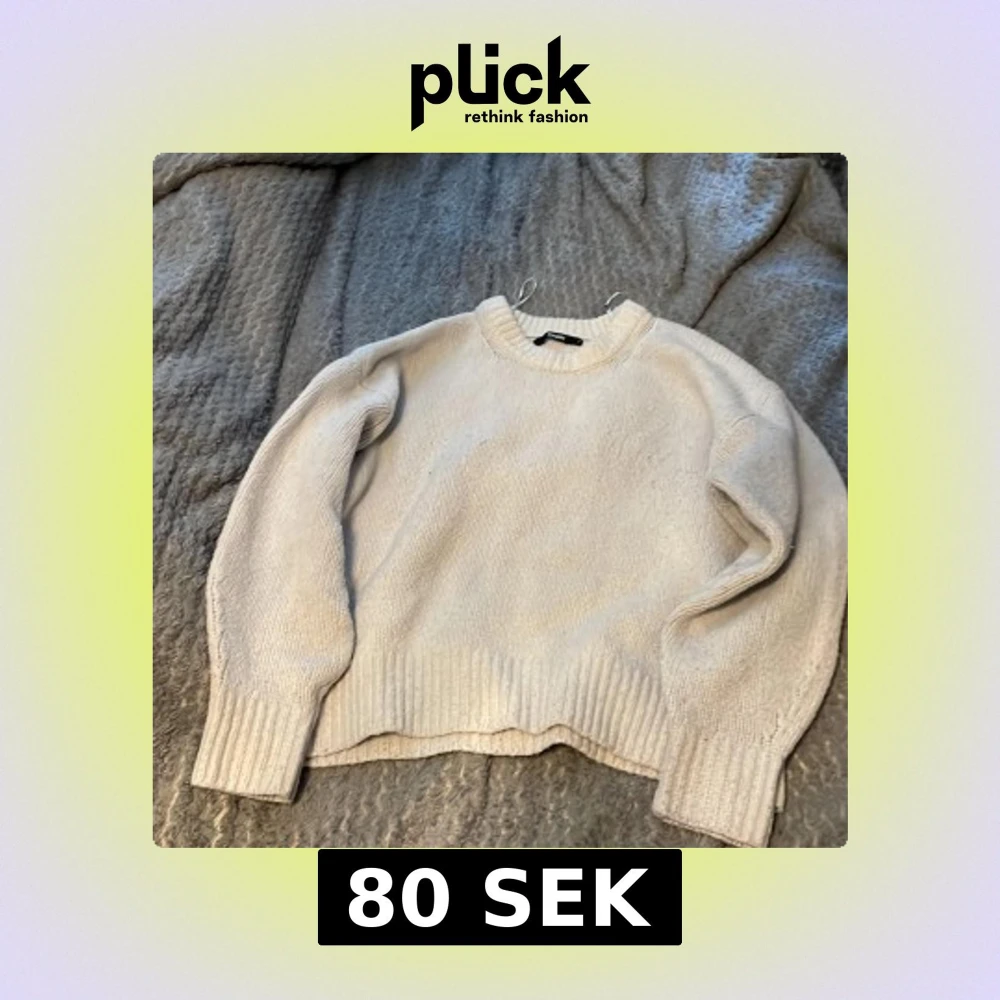 Säljer en enkel och stilren vit stickad tröja från BikBok i storlek S. Tröjan har rund halsringning, långa ärmar och breda ribbade muddar vid ärmslut och nederkant. Perfekt för lager-på-lager under kyliga dagar.