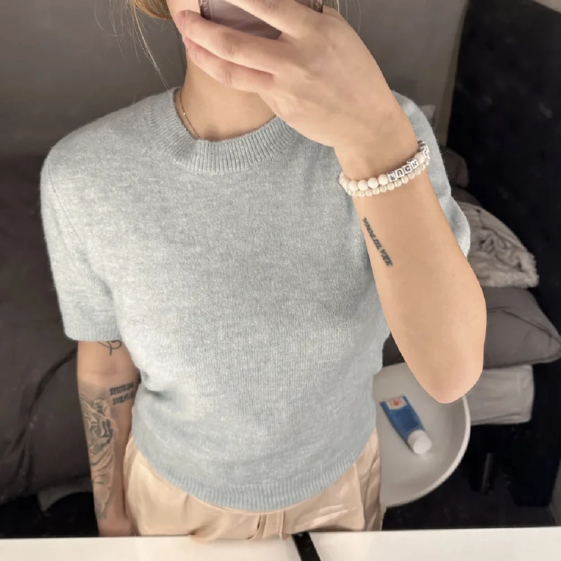 En fin stickad ljusblå helt oanvänd därav bra skick. Storlek Xs men skulle säga passa Xs-S.