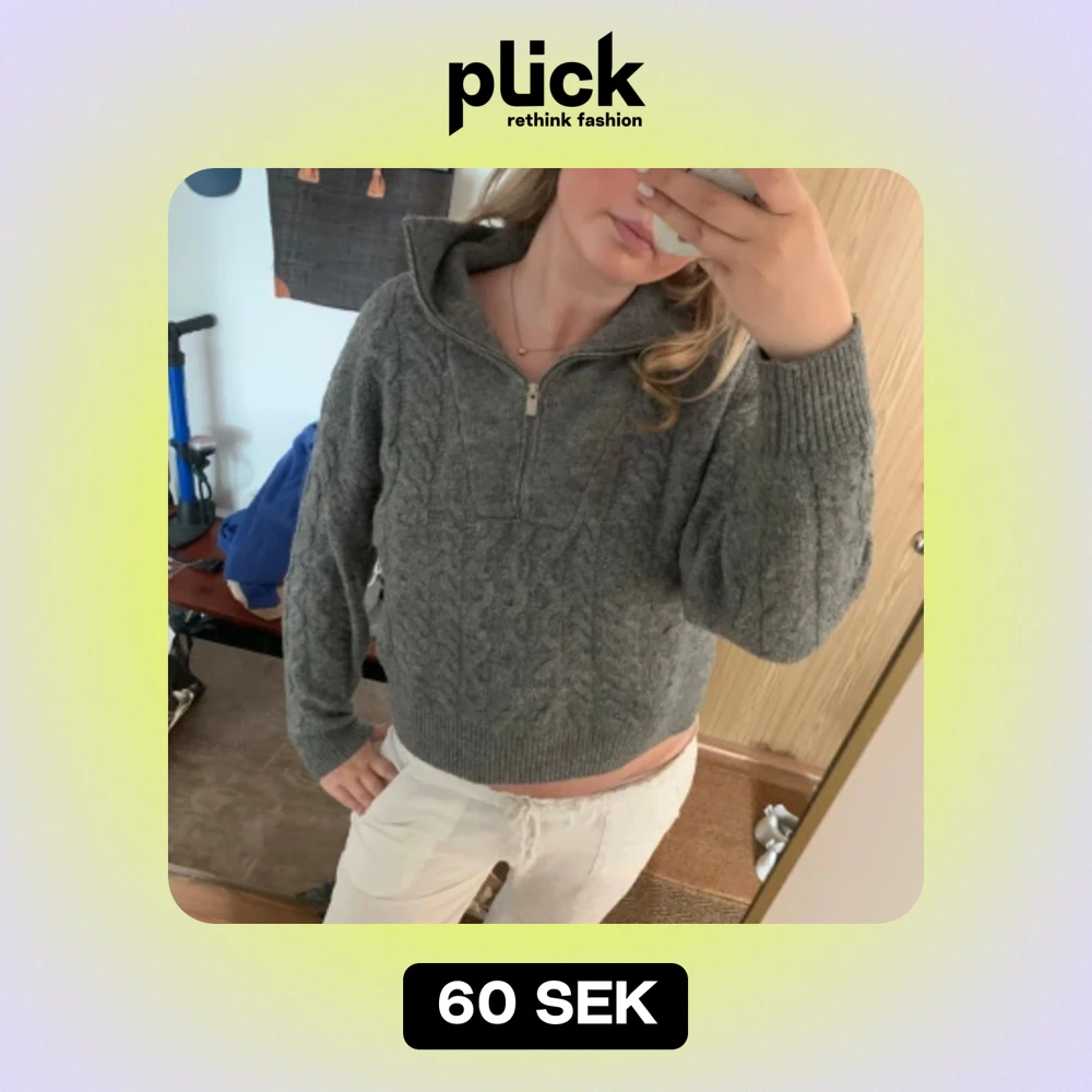 Säljer denna gråa stickade zip up från bikbok, passar perfekt till hösten.