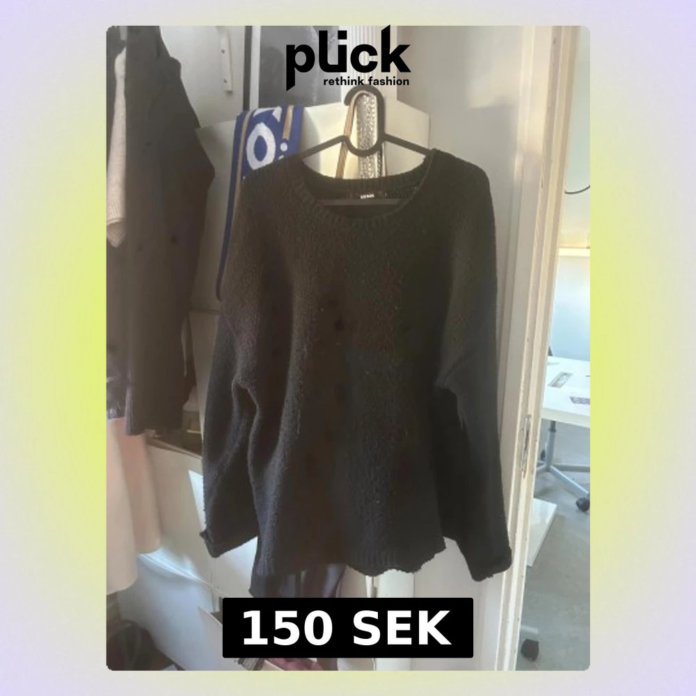 Svart stickad tröja från Bik Bok med rund hals och lång ärm. Tröjan har en loose passform och är perfekt för att hålla sig varm under kyliga dagar. Enkel och stilren design som funkar till många olika outfits.