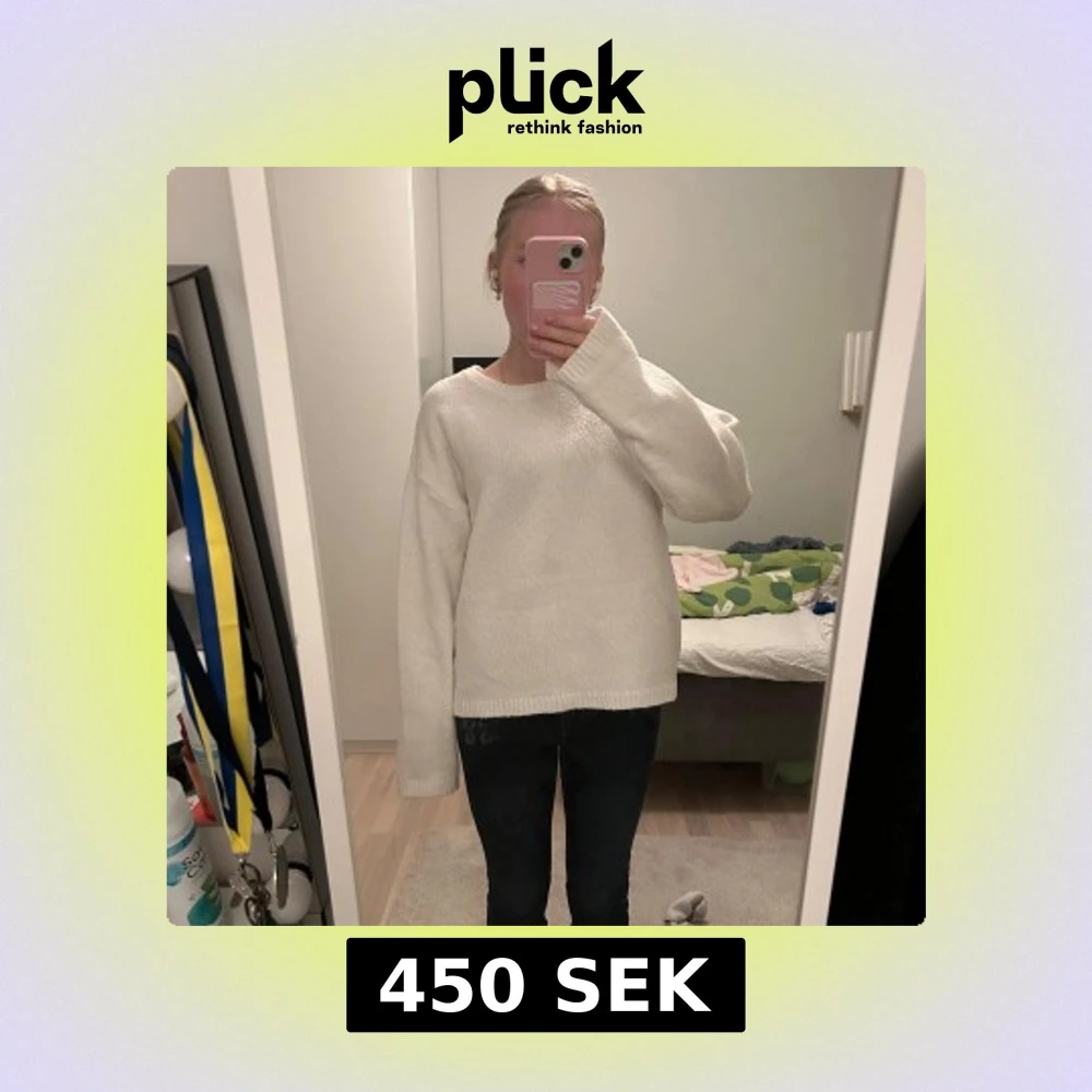 Jag säljer en mysig vit stickad tröja med långärmad design. Denna är använd max ett par gånger. Nypris är 600🩷