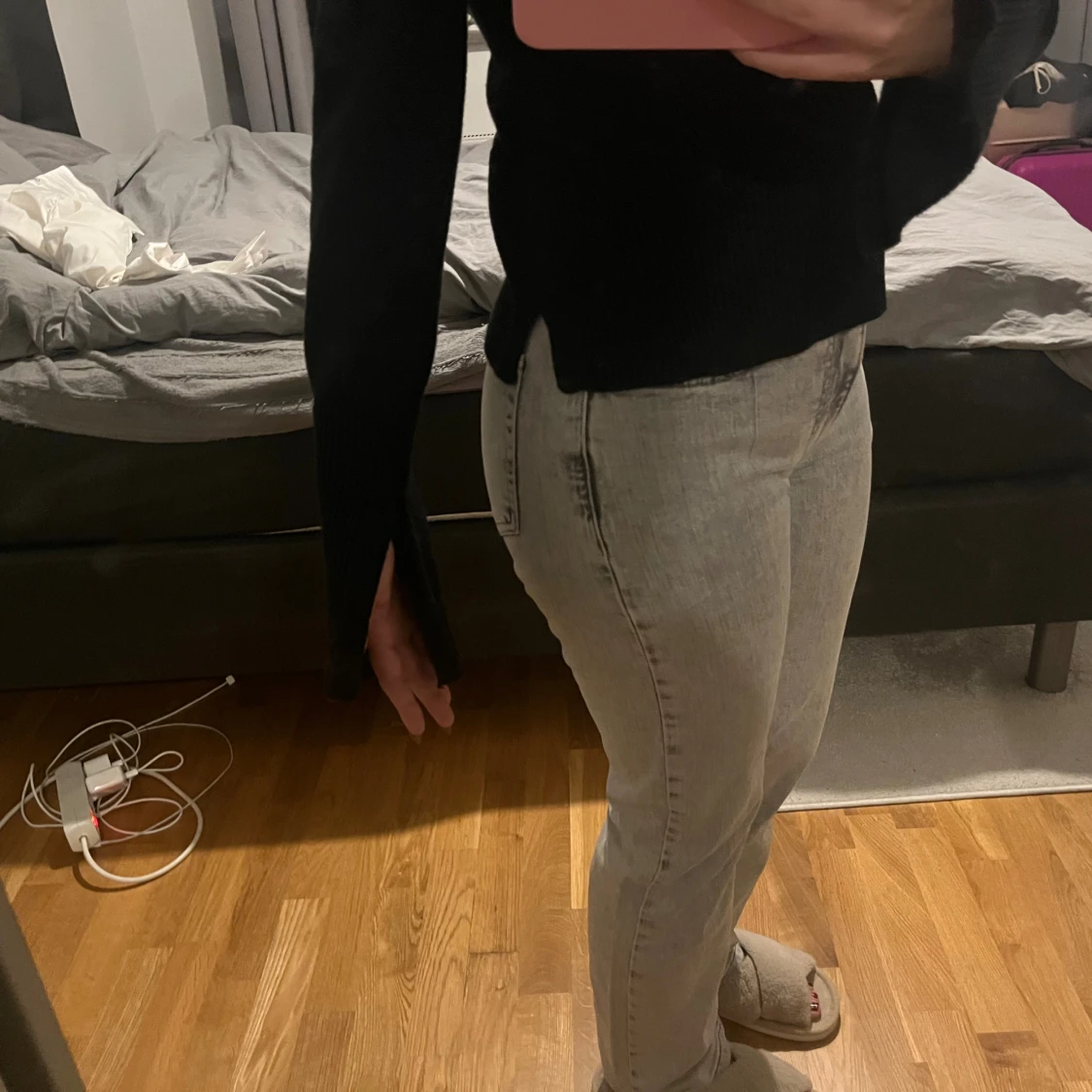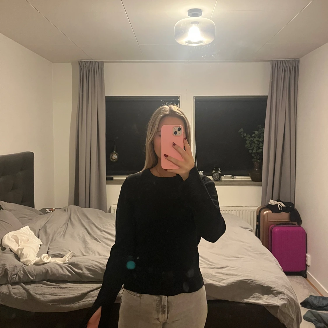 Svart stickad tröja med lång ärm och cool slitsdetalj vid ärmslutet. Tröjan har en klassisk rund halsringning och en något loose passform. Perfekt för dig som gillar stilrena plagg med en twist.